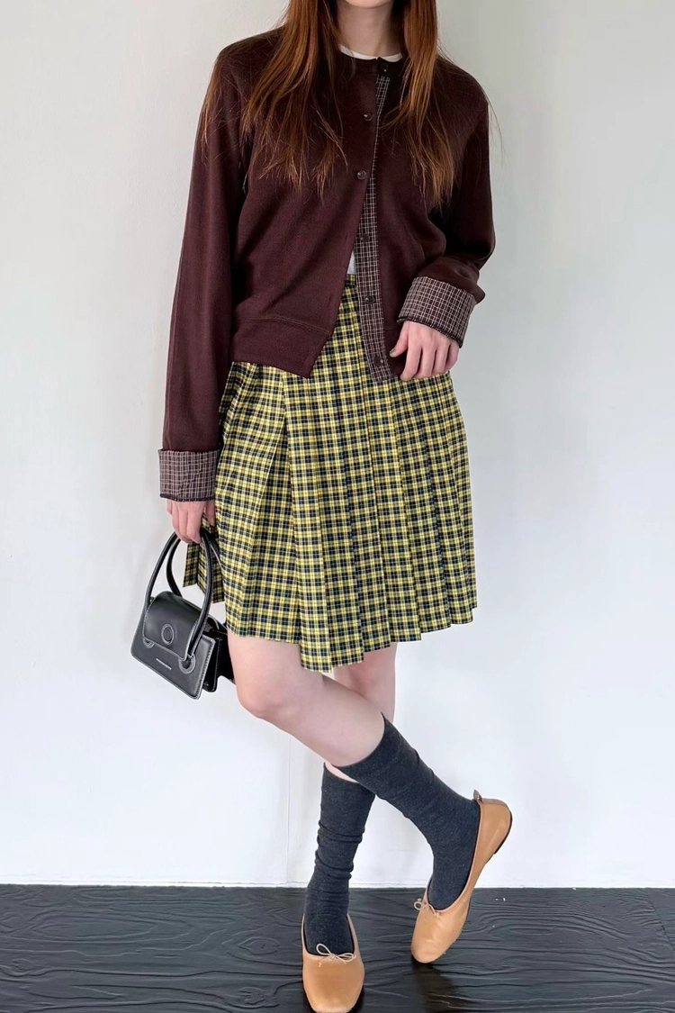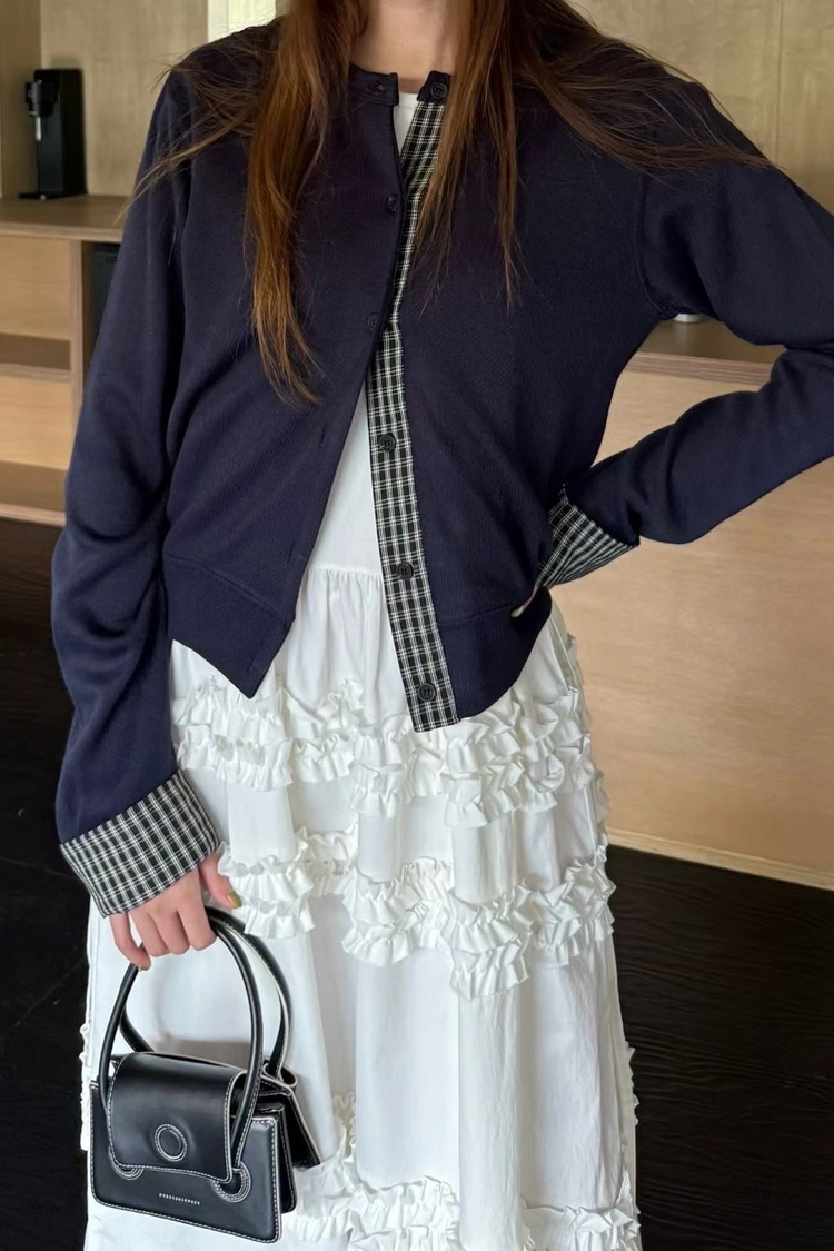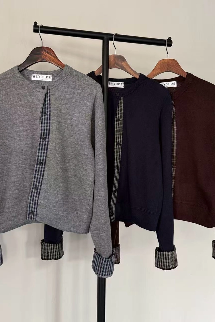 格紋撞色毛呢外套