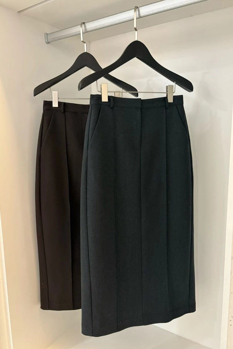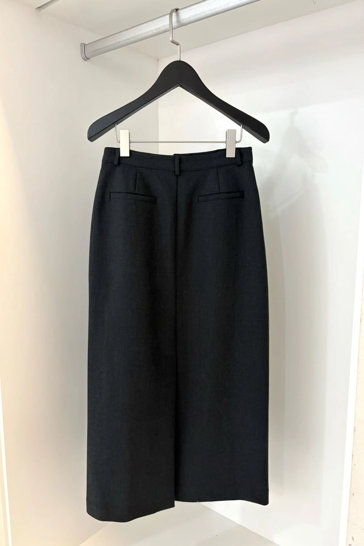 毛料剪裁西裝長裙