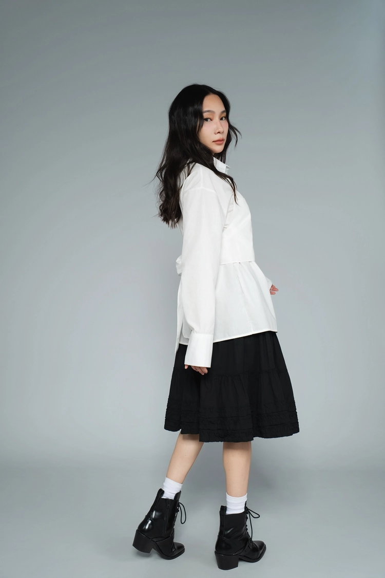 蝴蝶結後綁帶襯衫