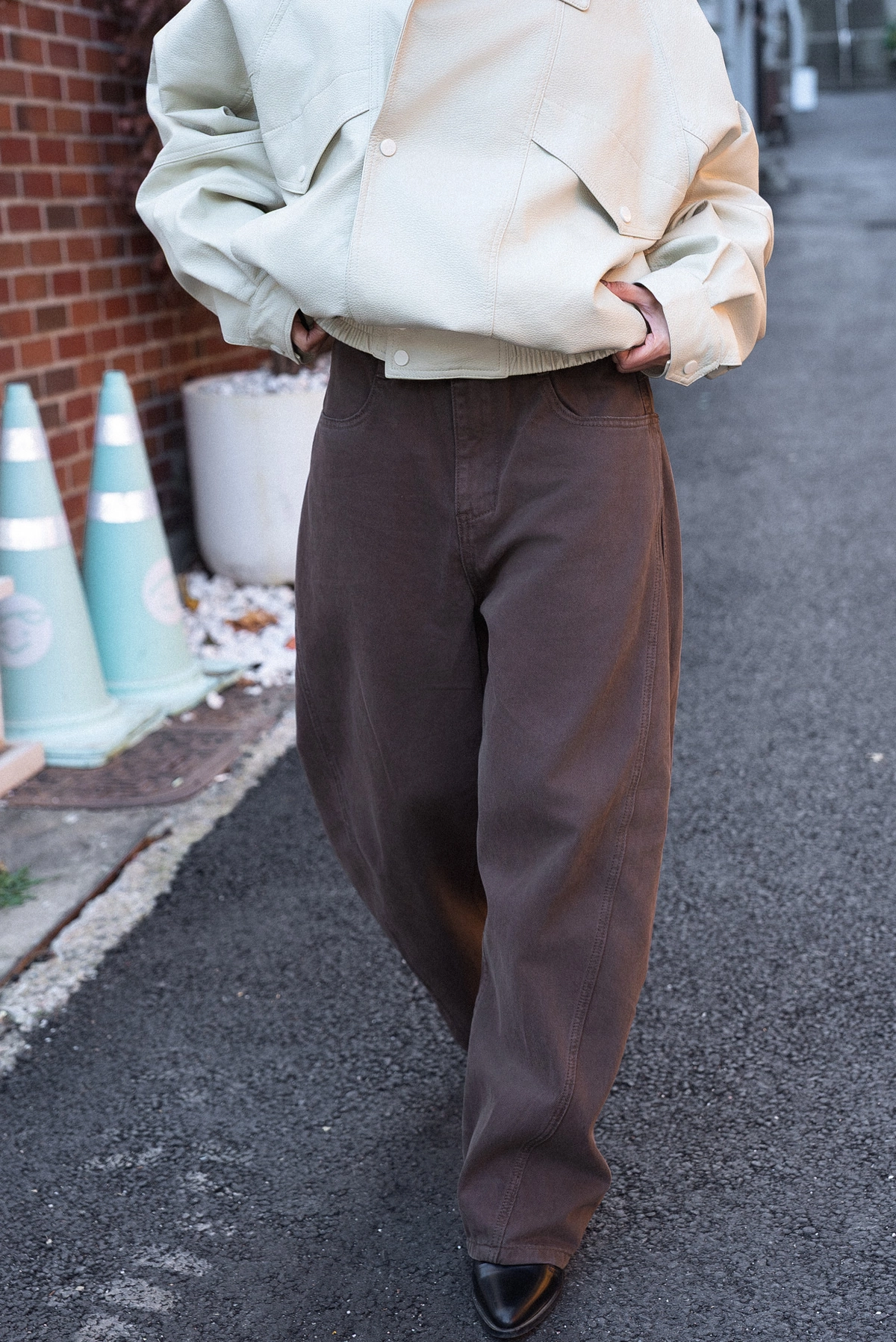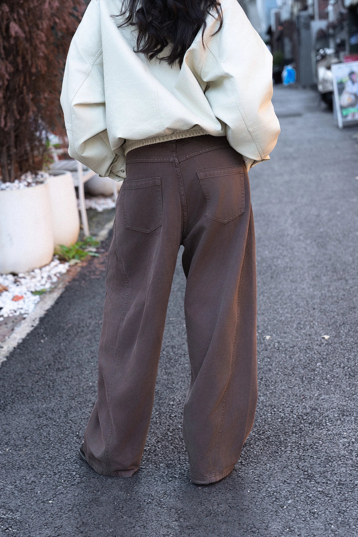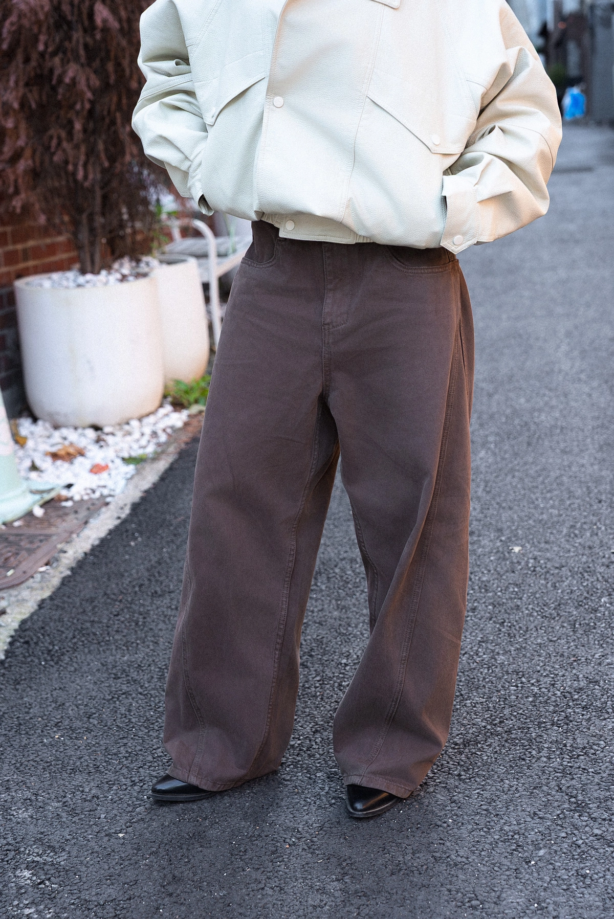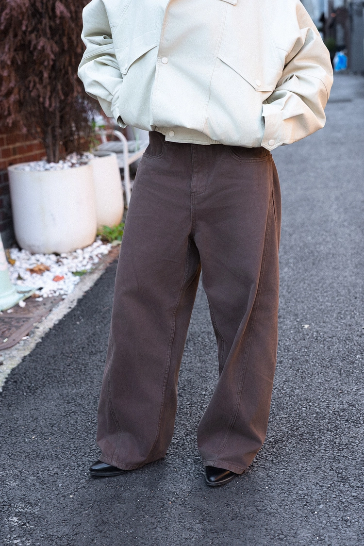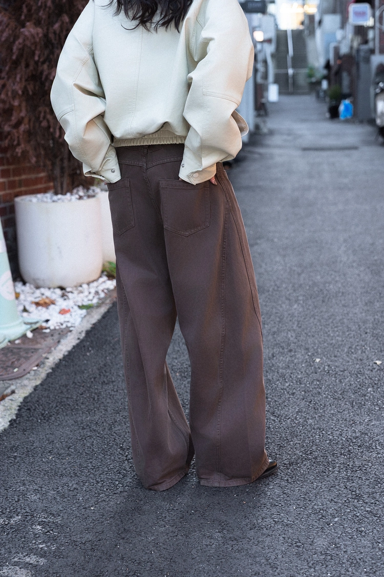 咖色水洗棉廓形褲