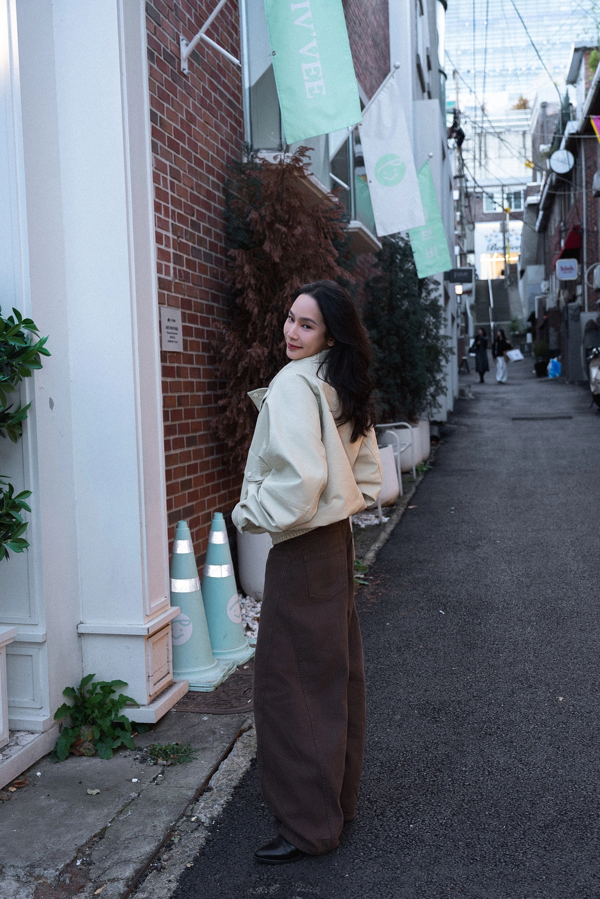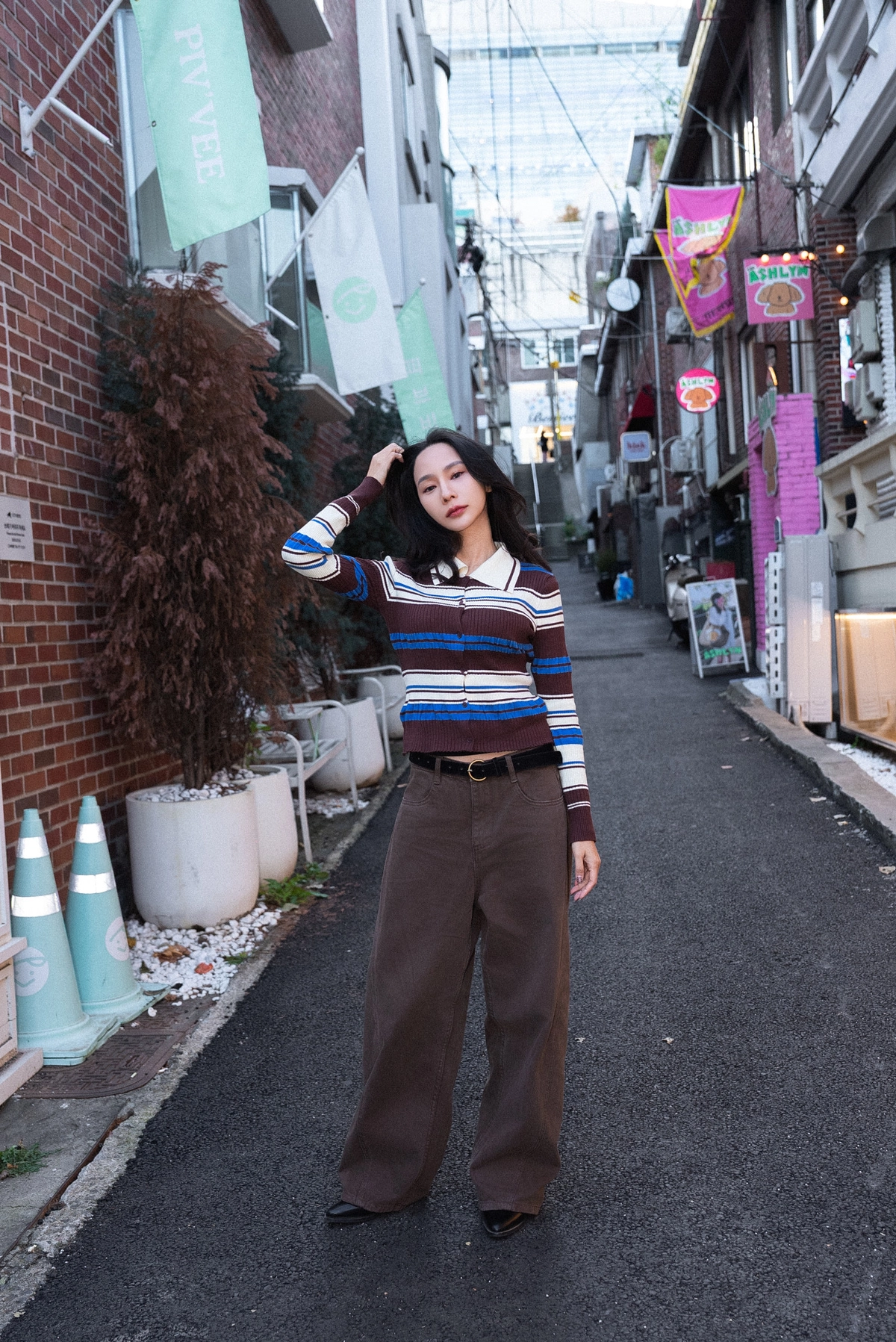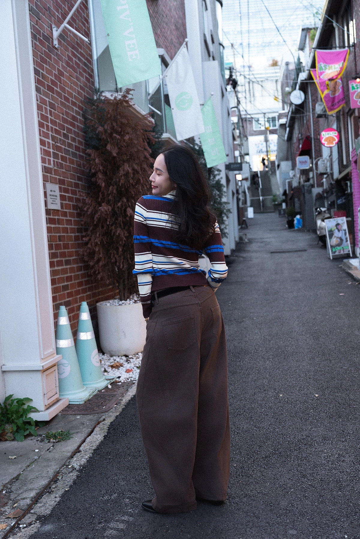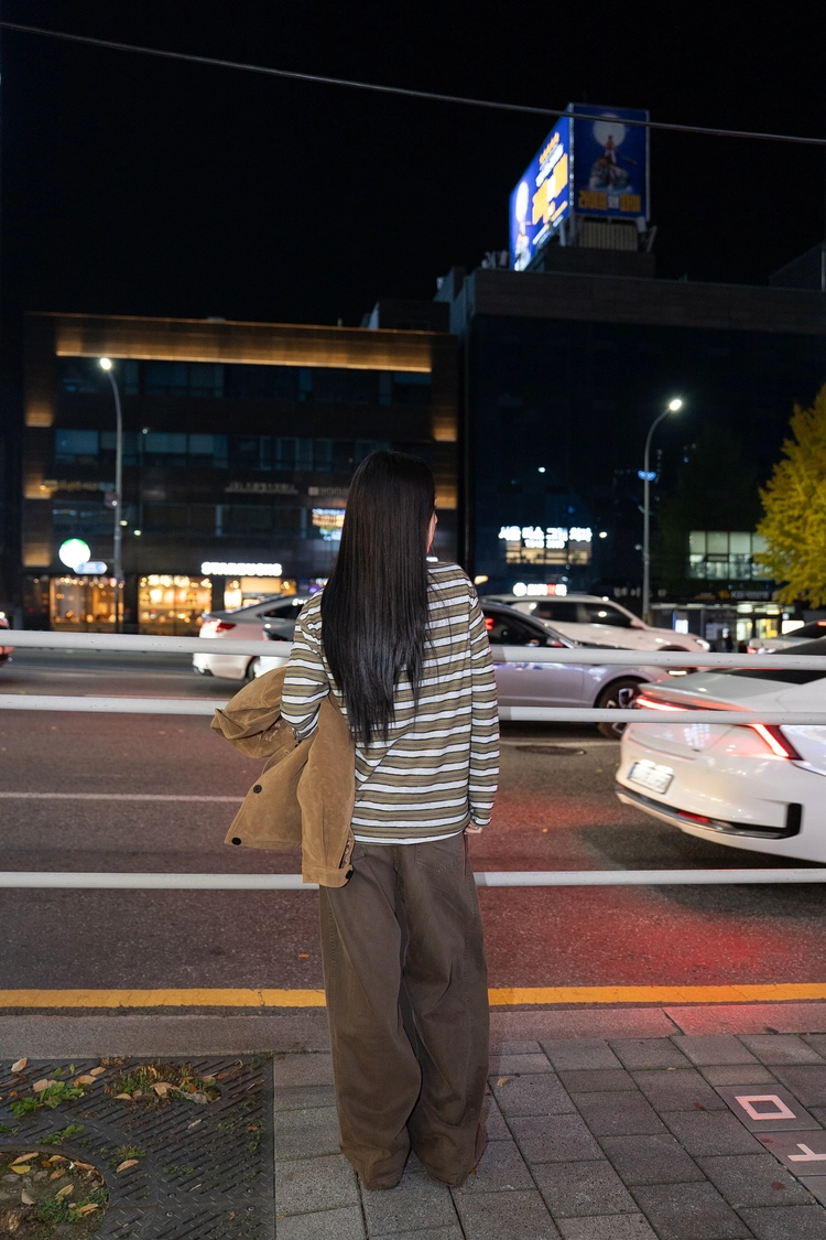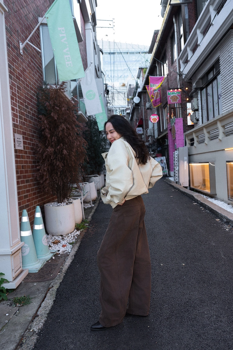 咖色水洗棉廓形褲