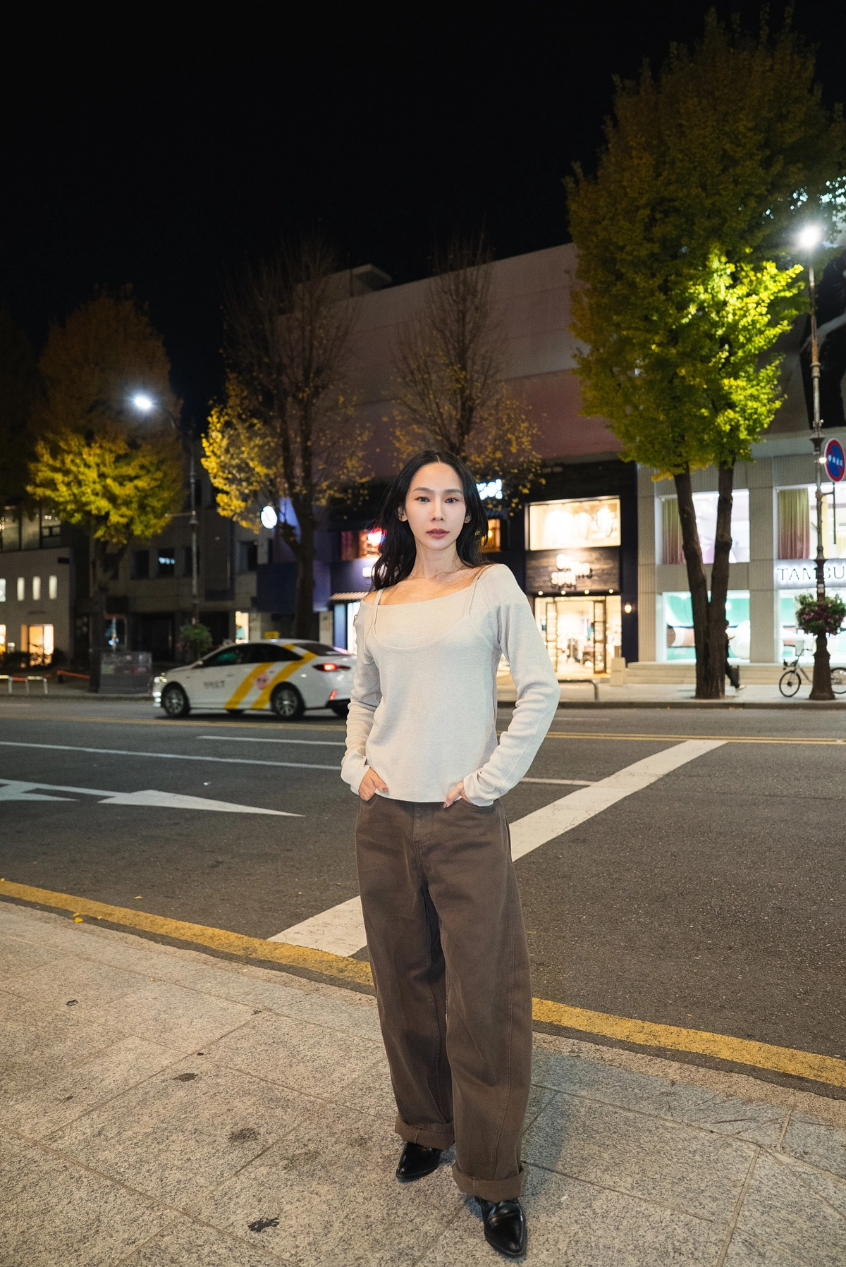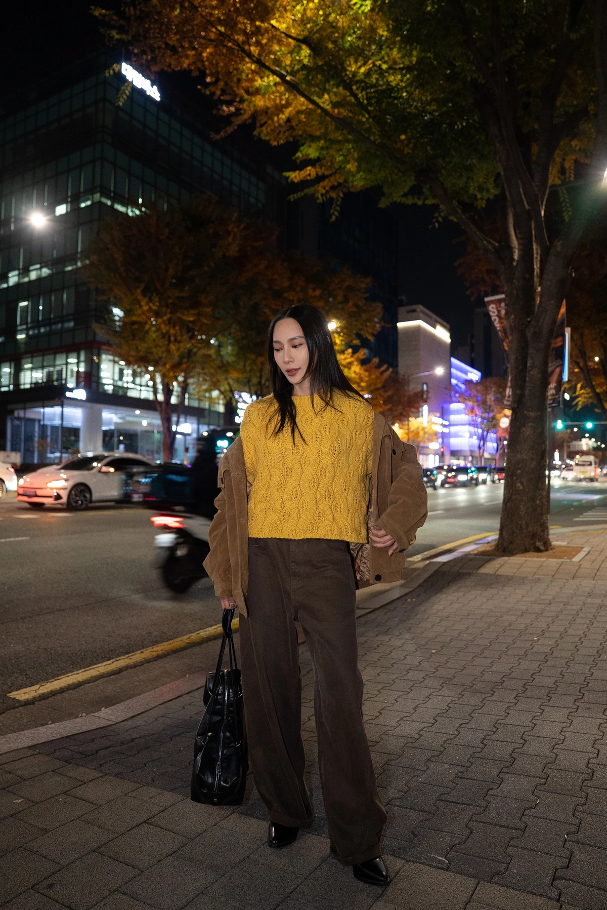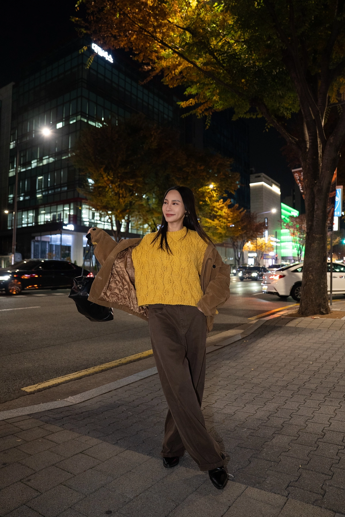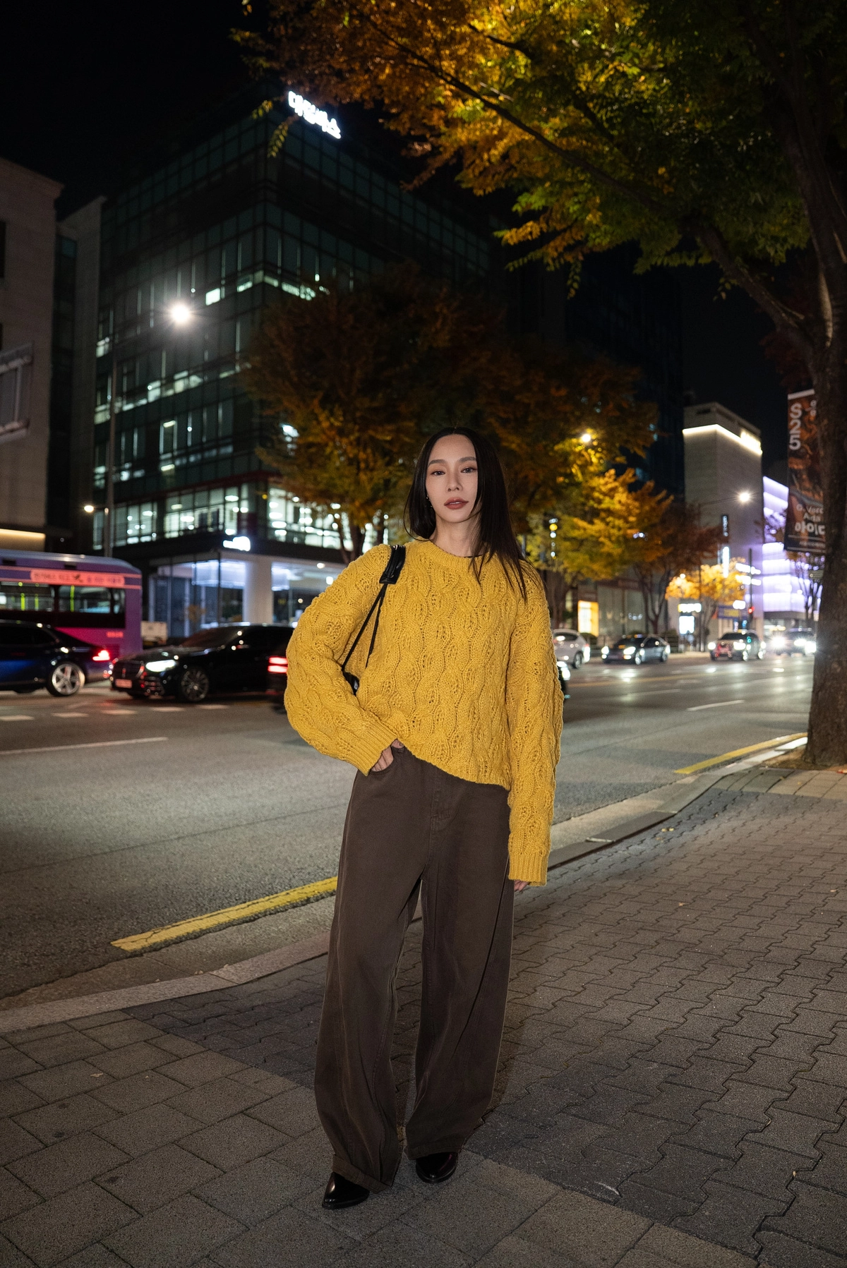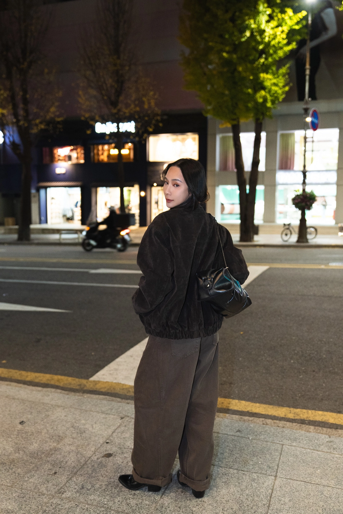 咖色水洗棉廓形褲