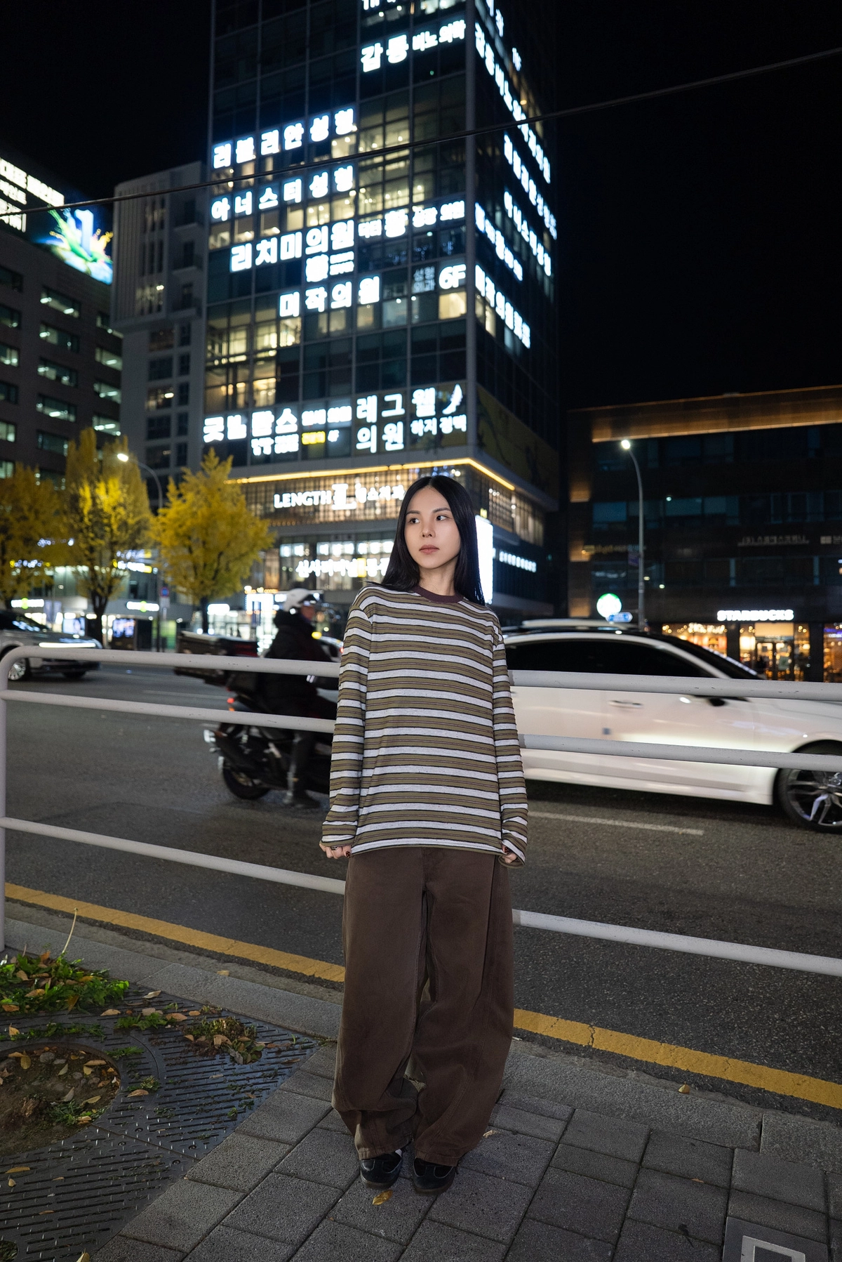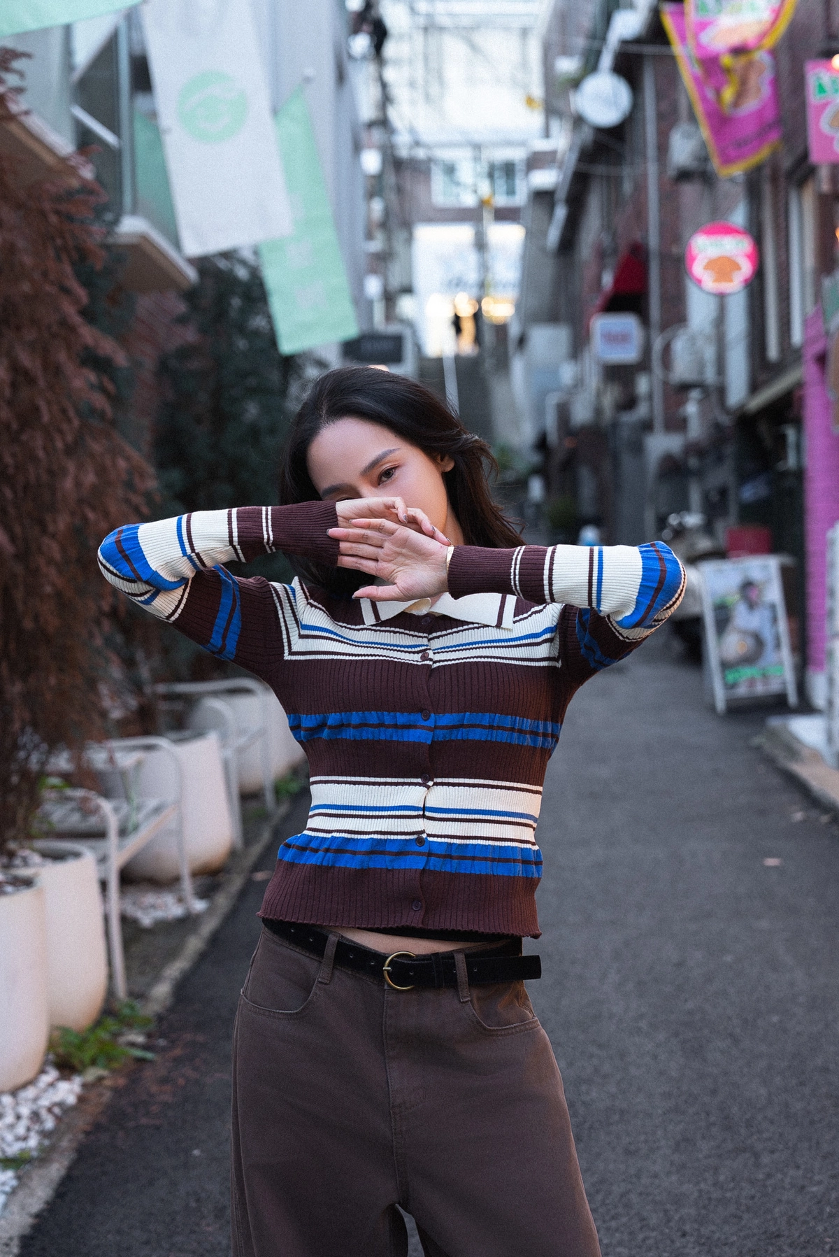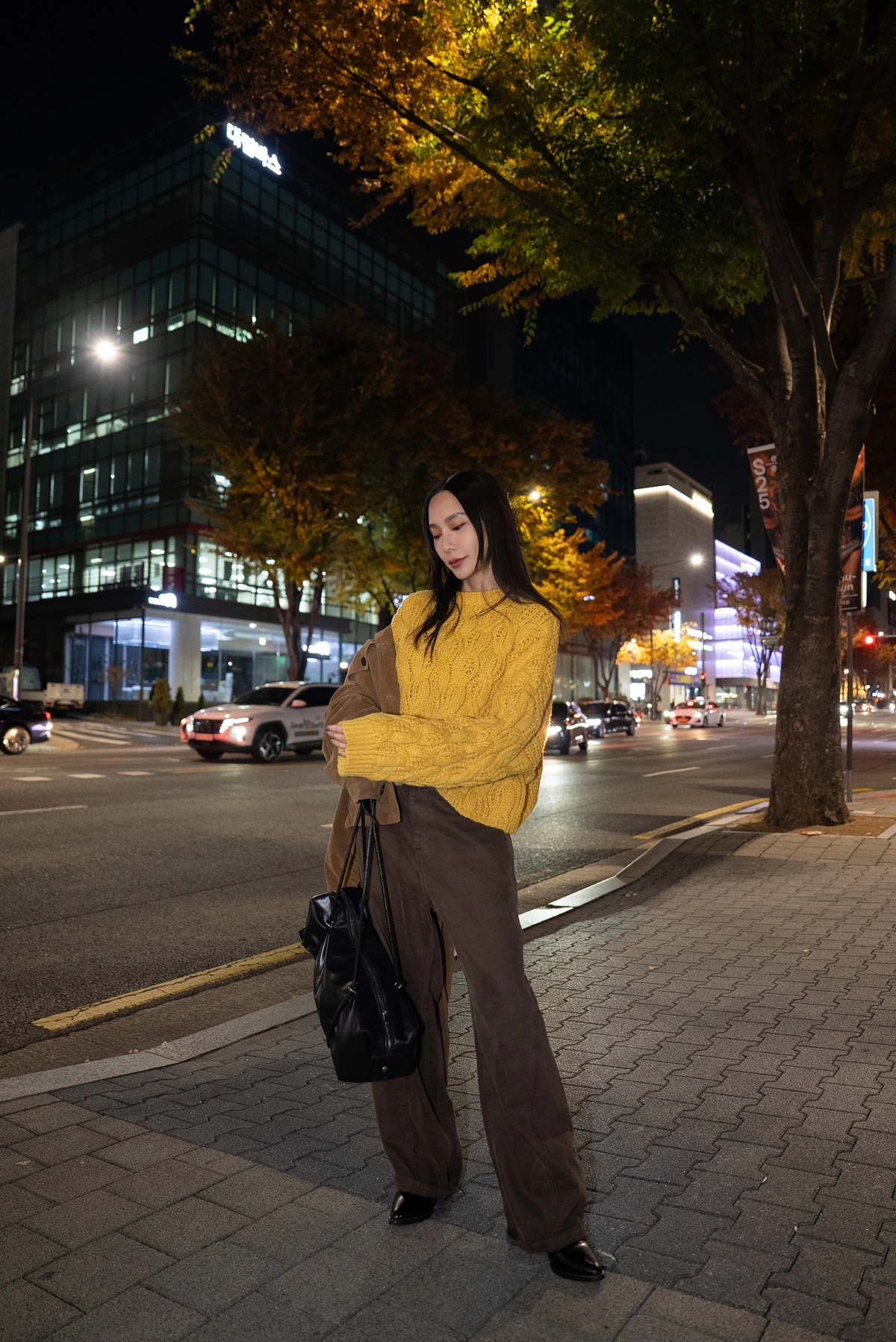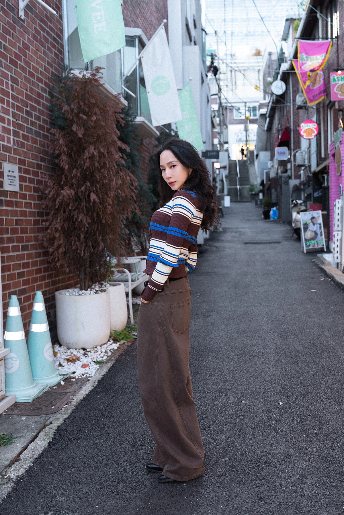 咖色水洗棉廓形褲