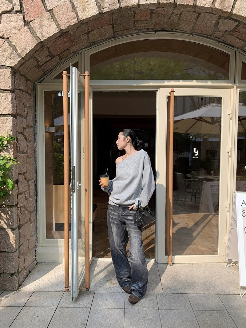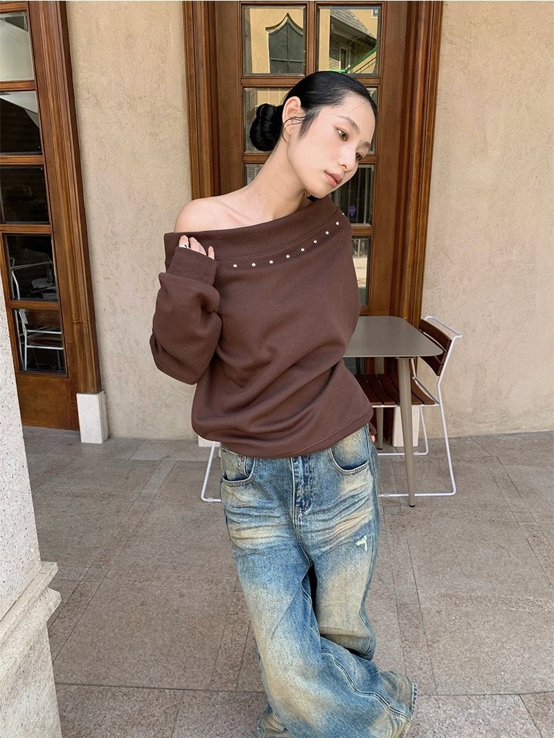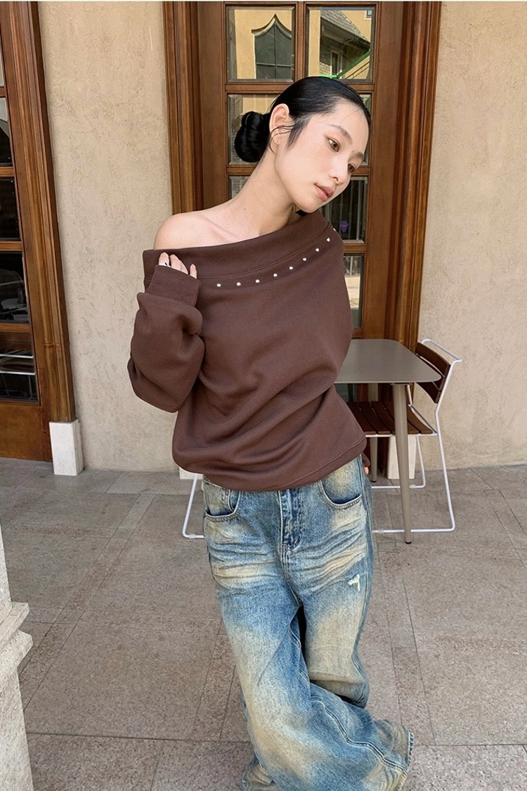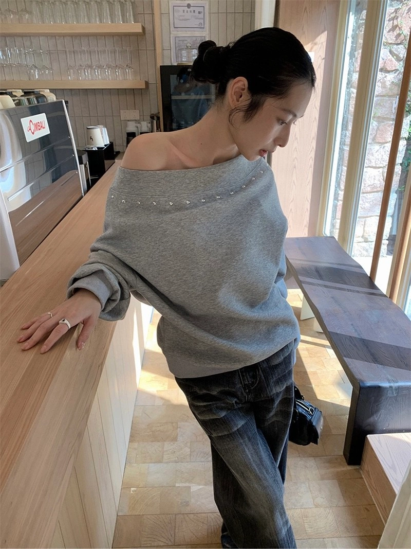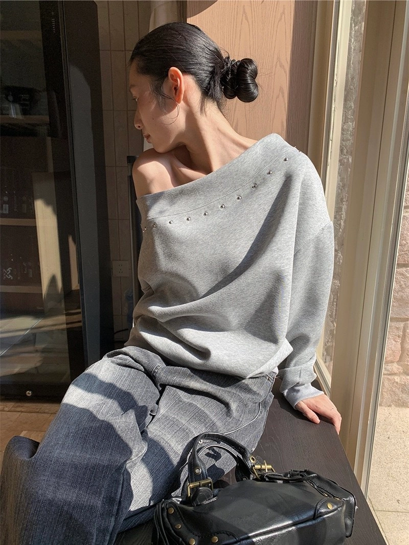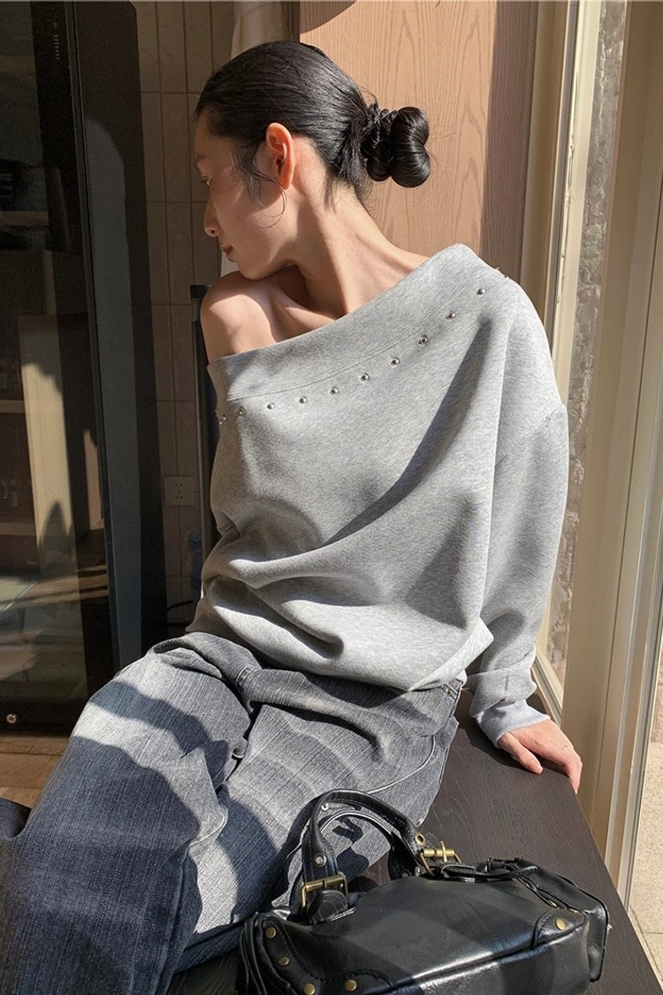 斜肩鉚釘衛衣