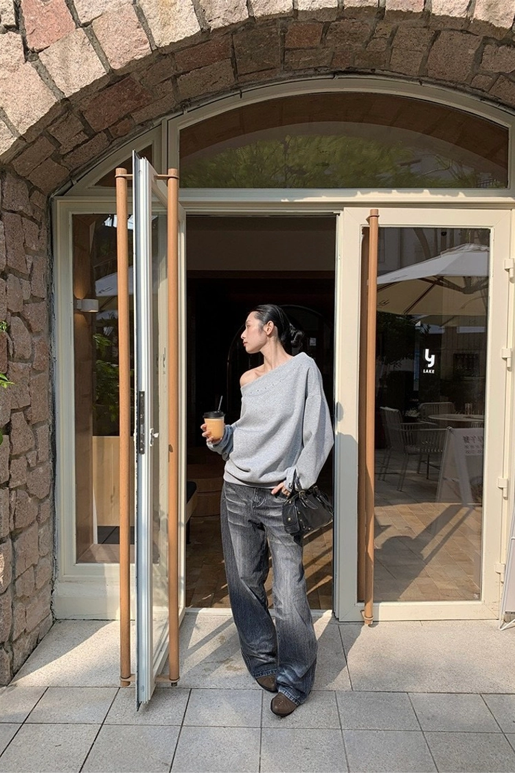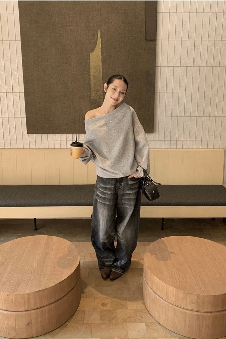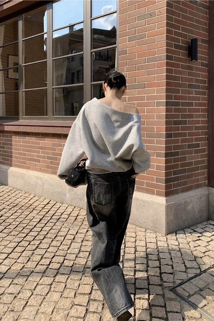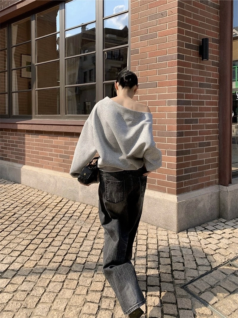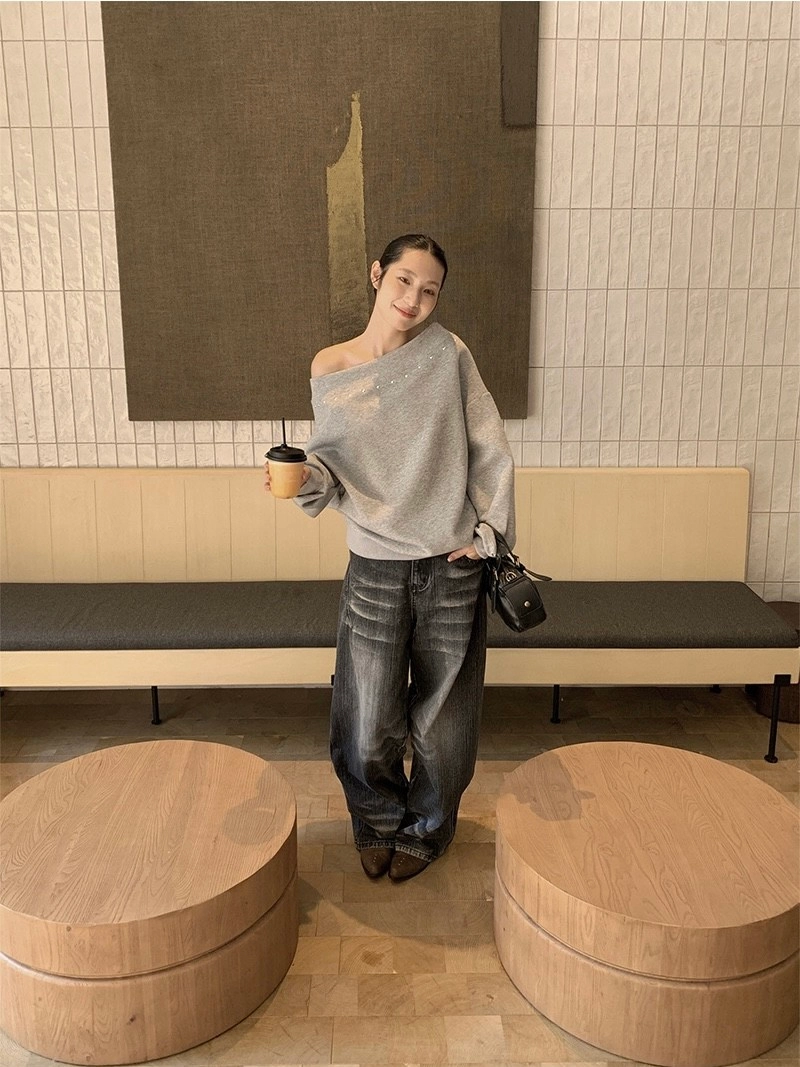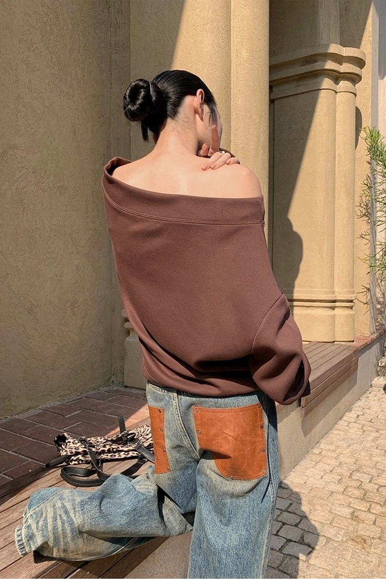 斜肩鉚釘衛衣