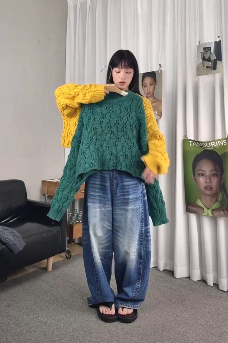 短版圓領麻花毛衣