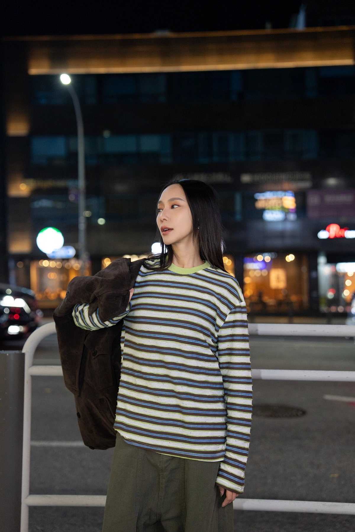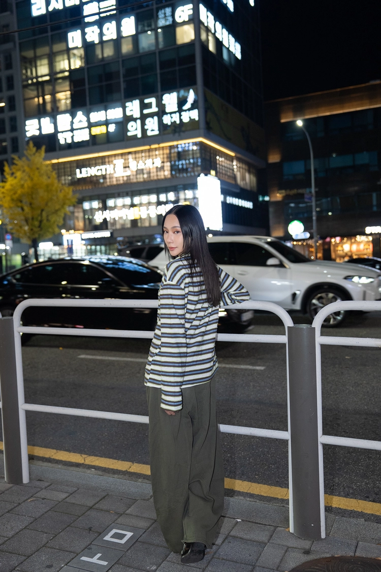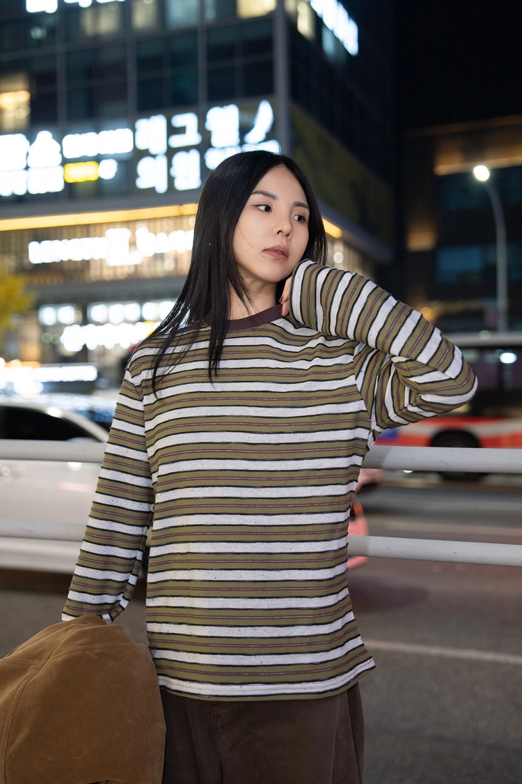 圓領撞色條紋上衣