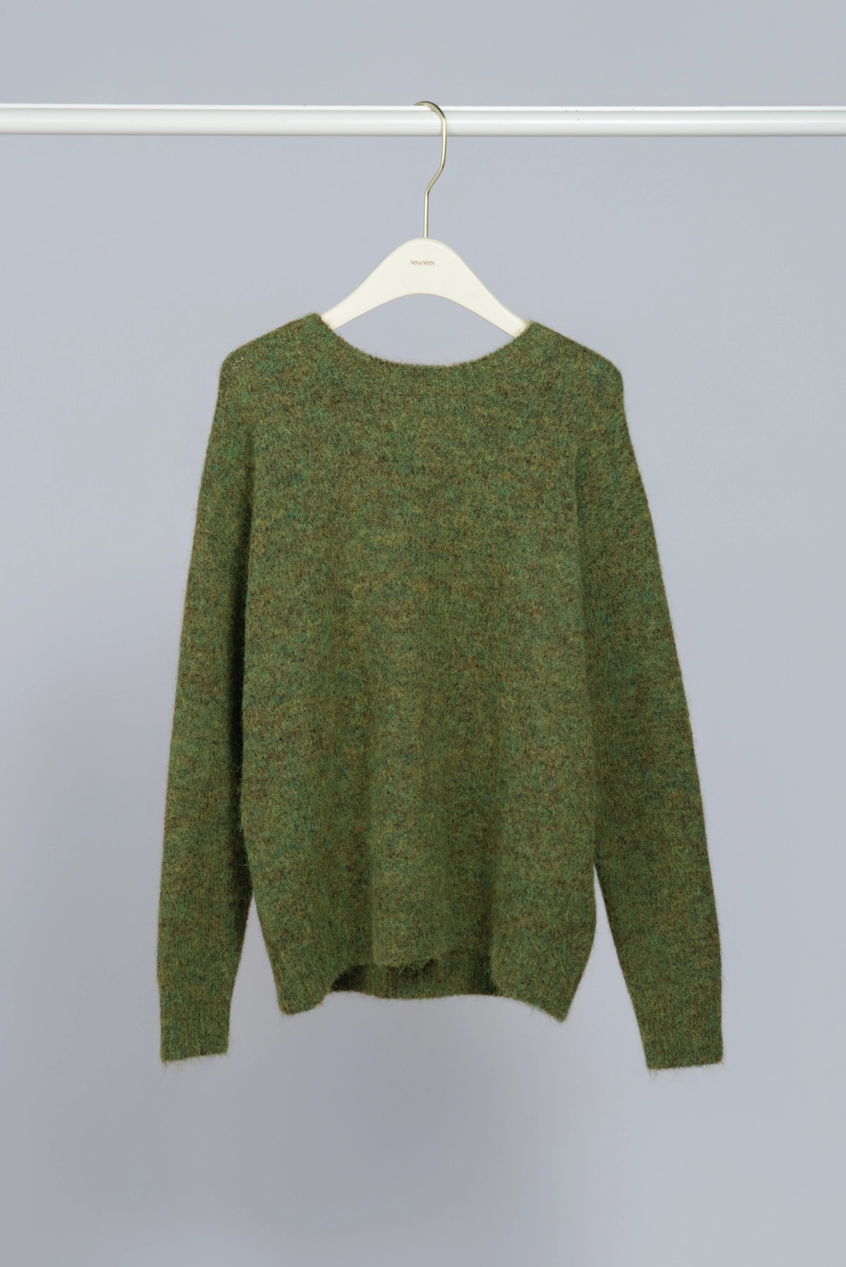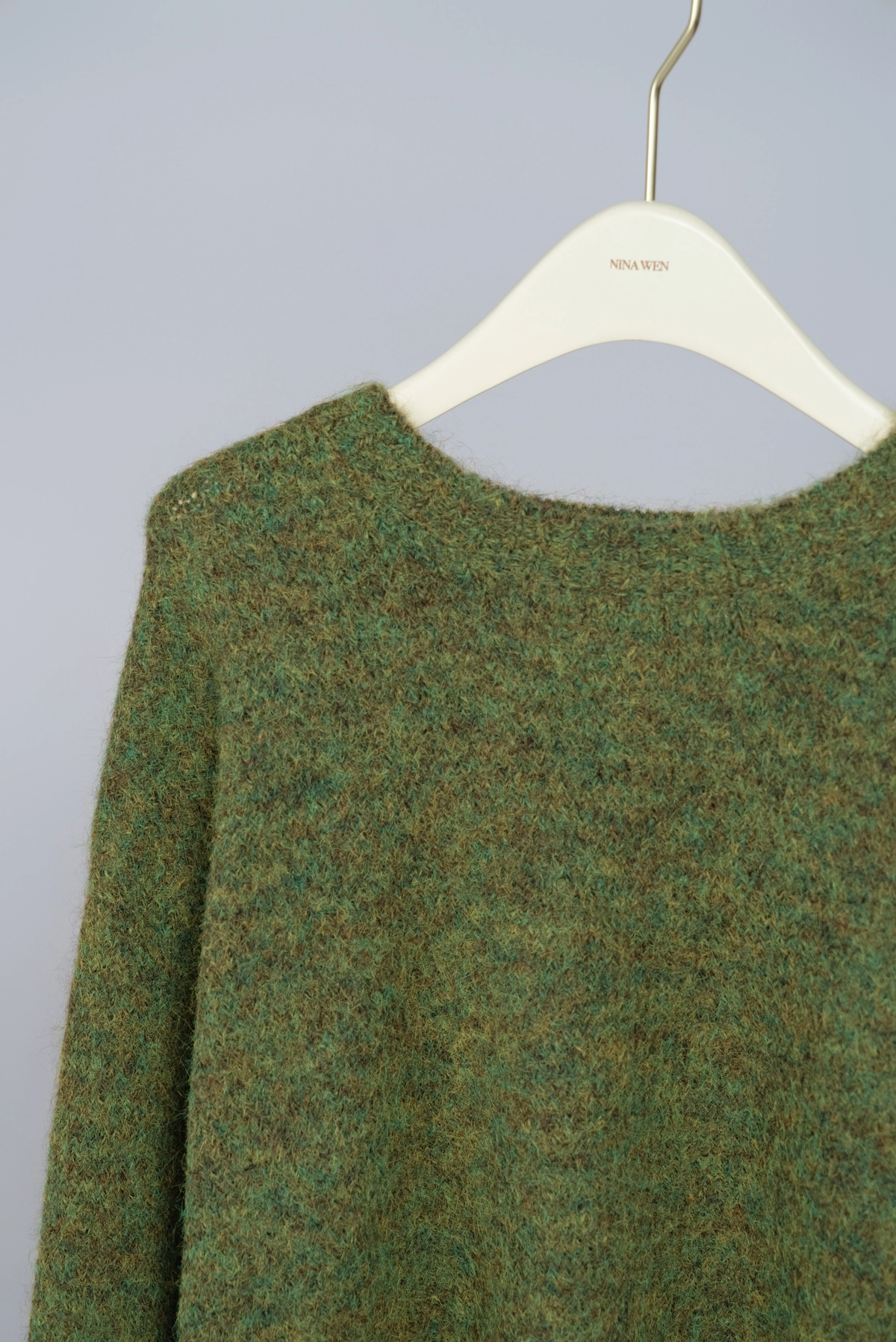 鬆弛感圓領綠色毛衣