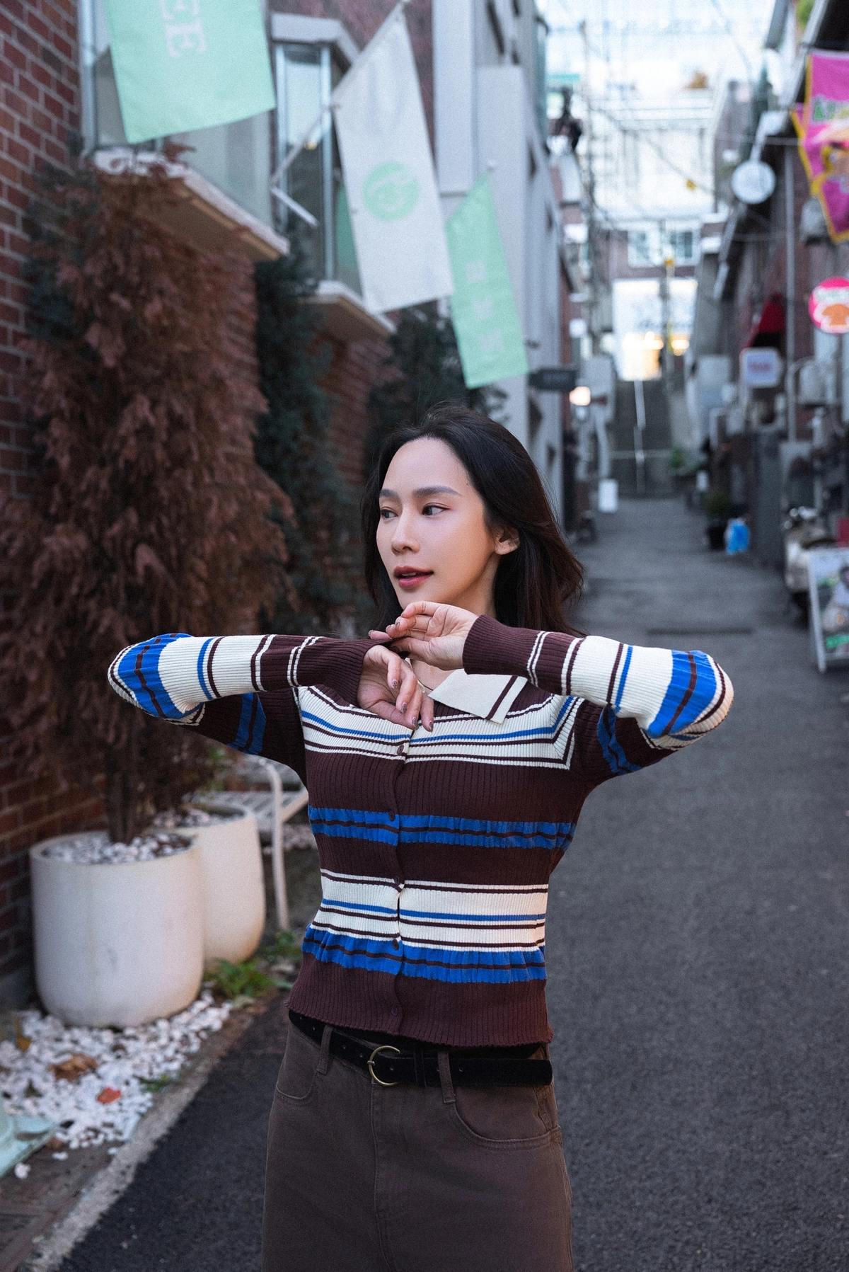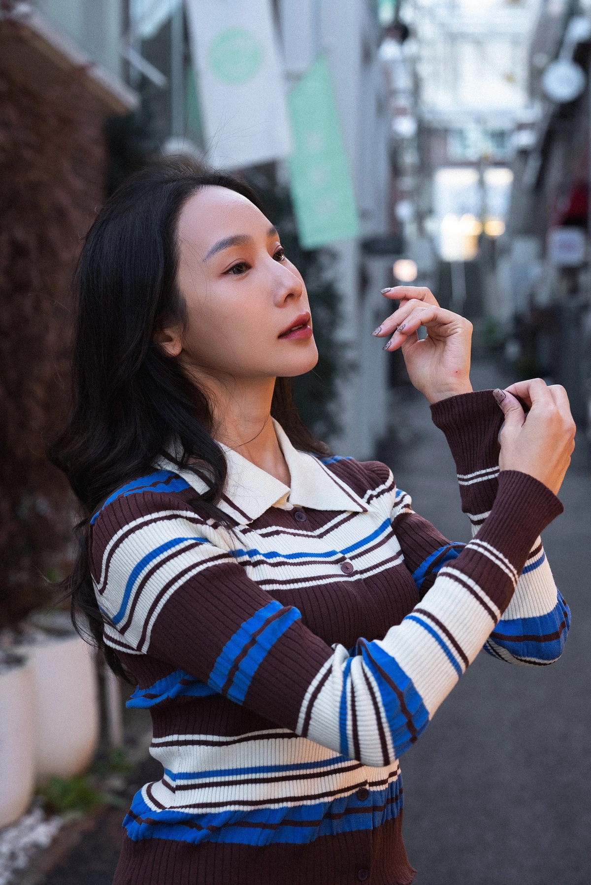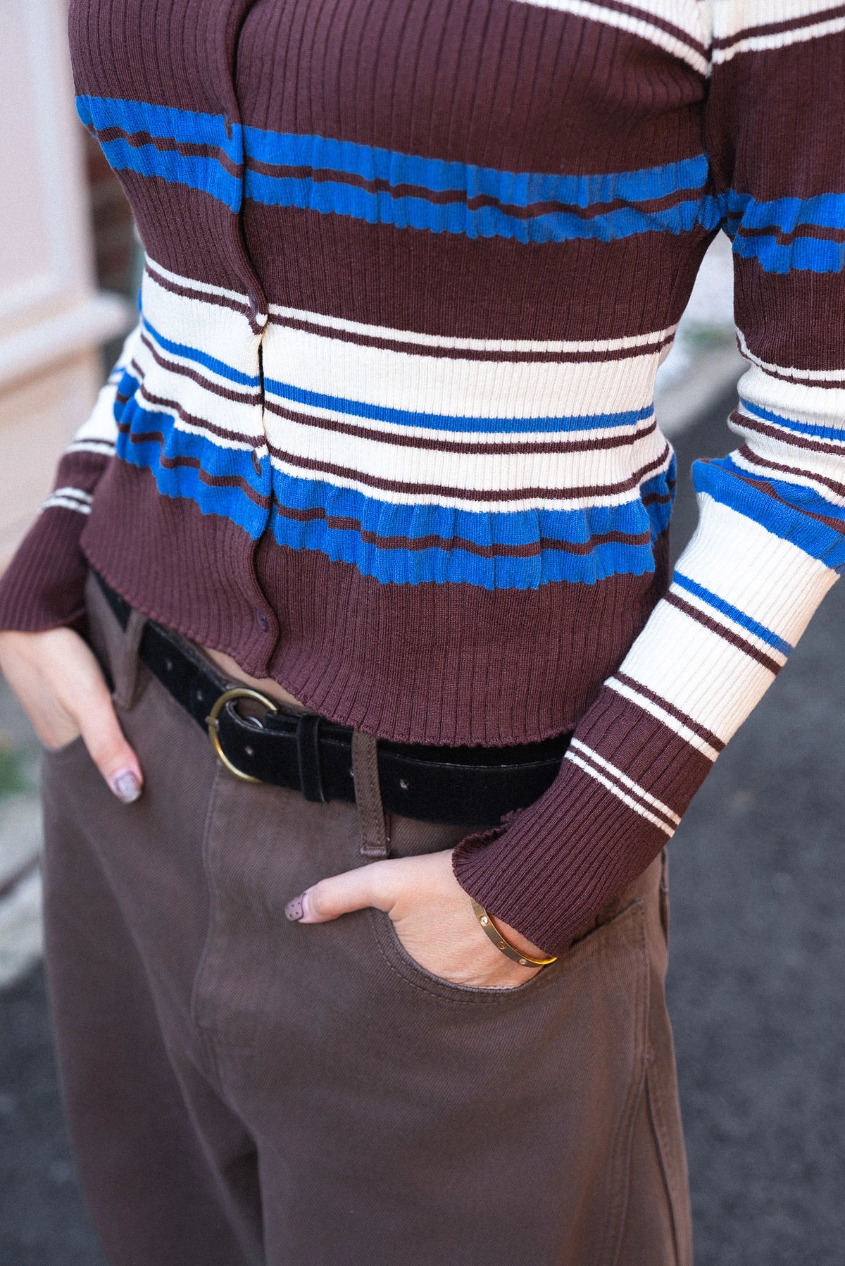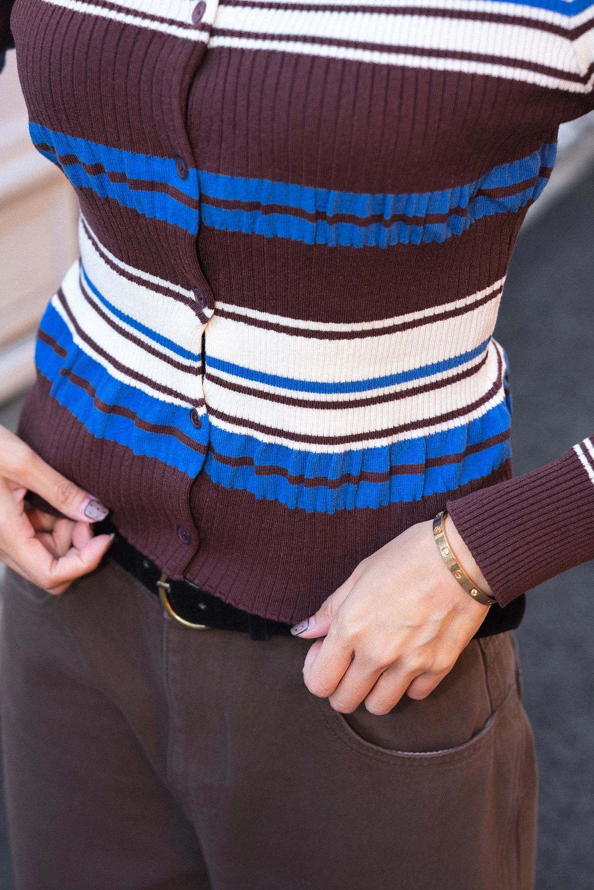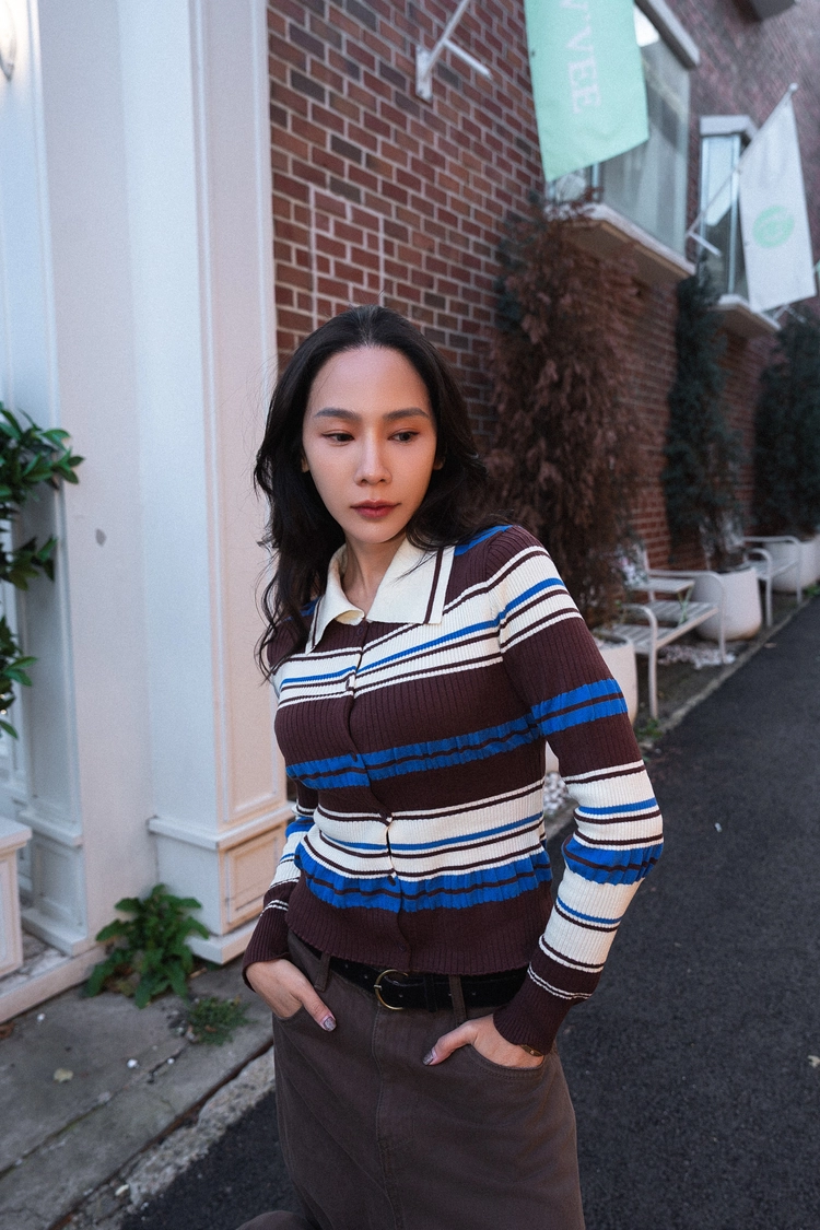 撞色條紋開襟上衣