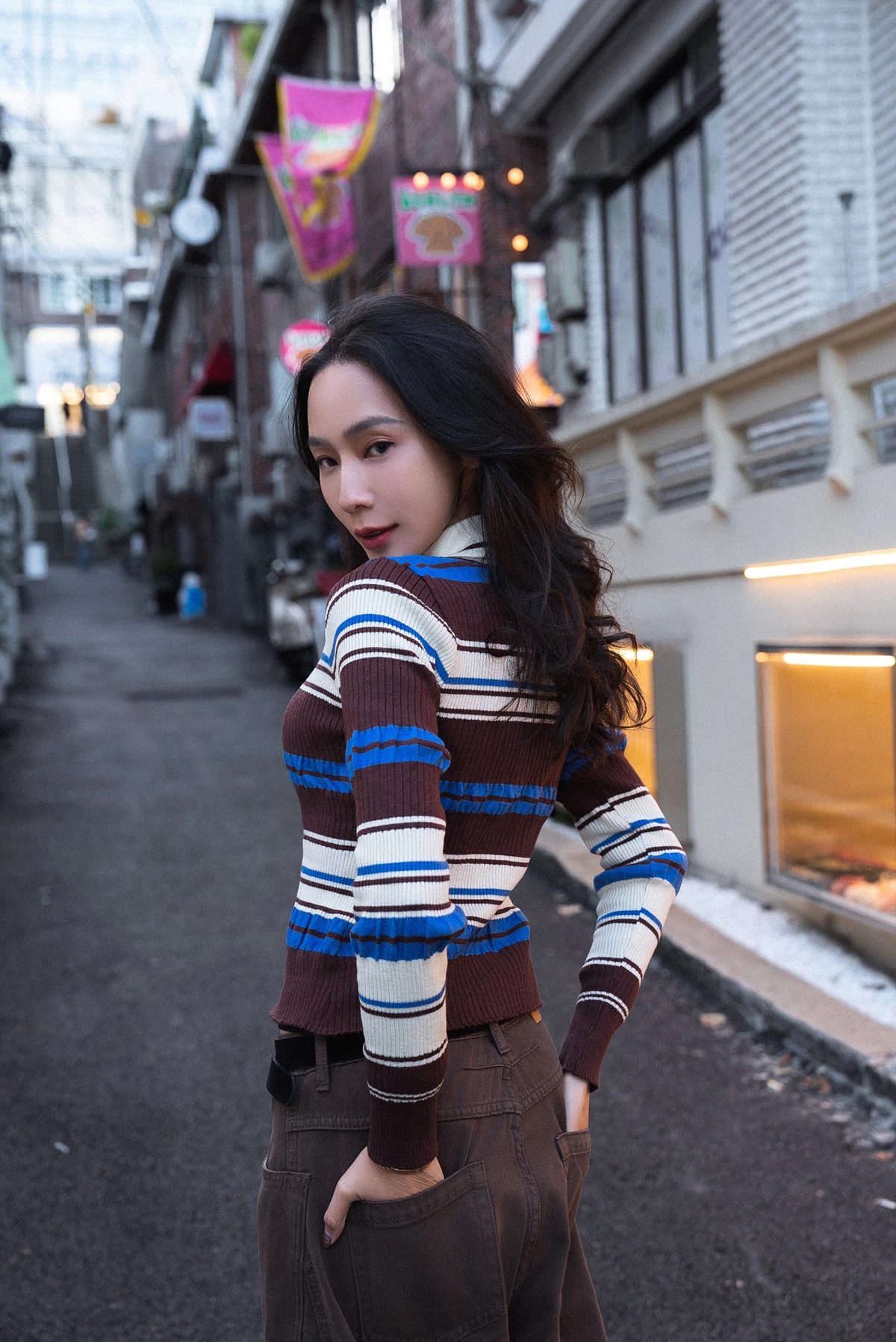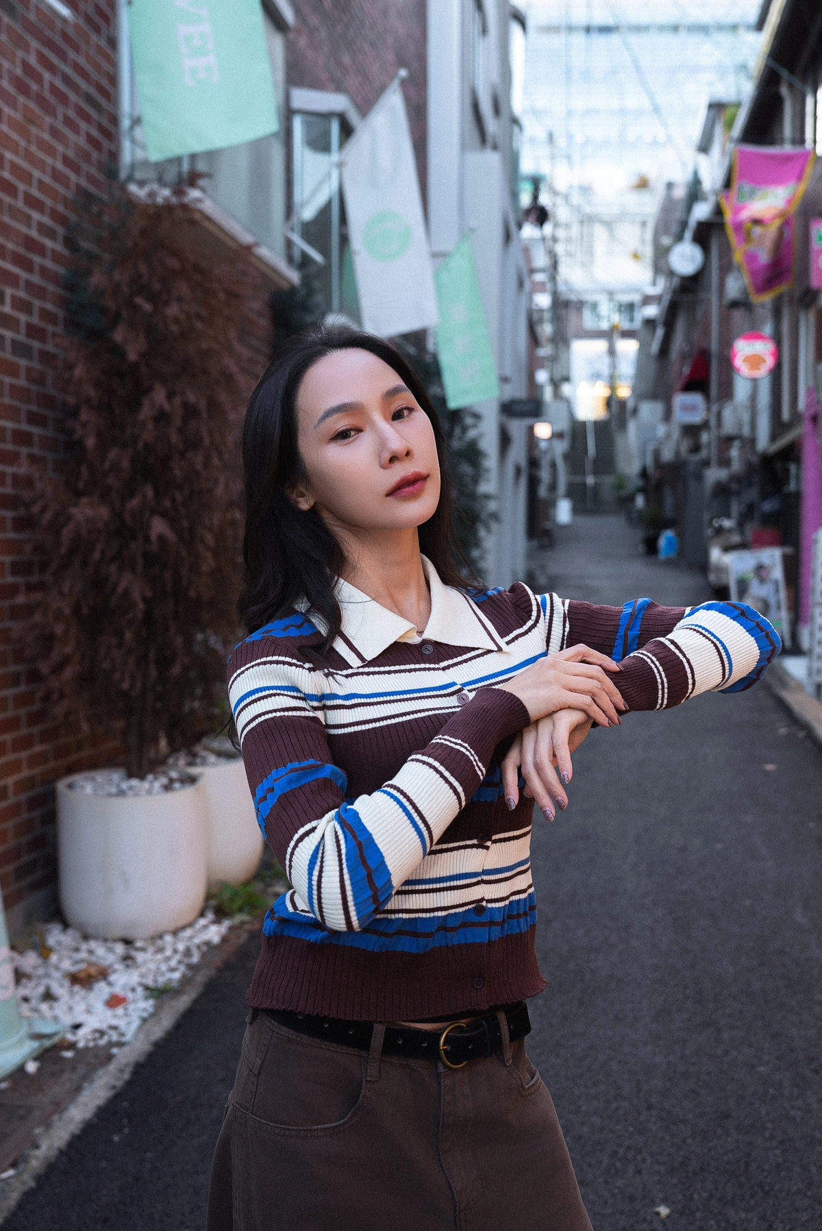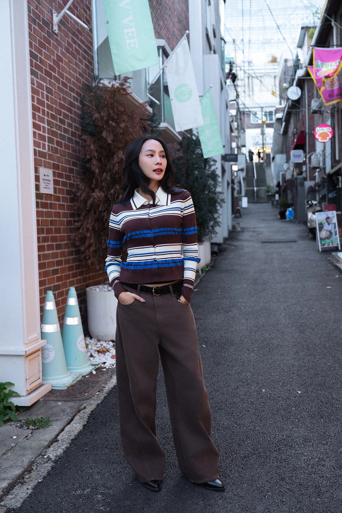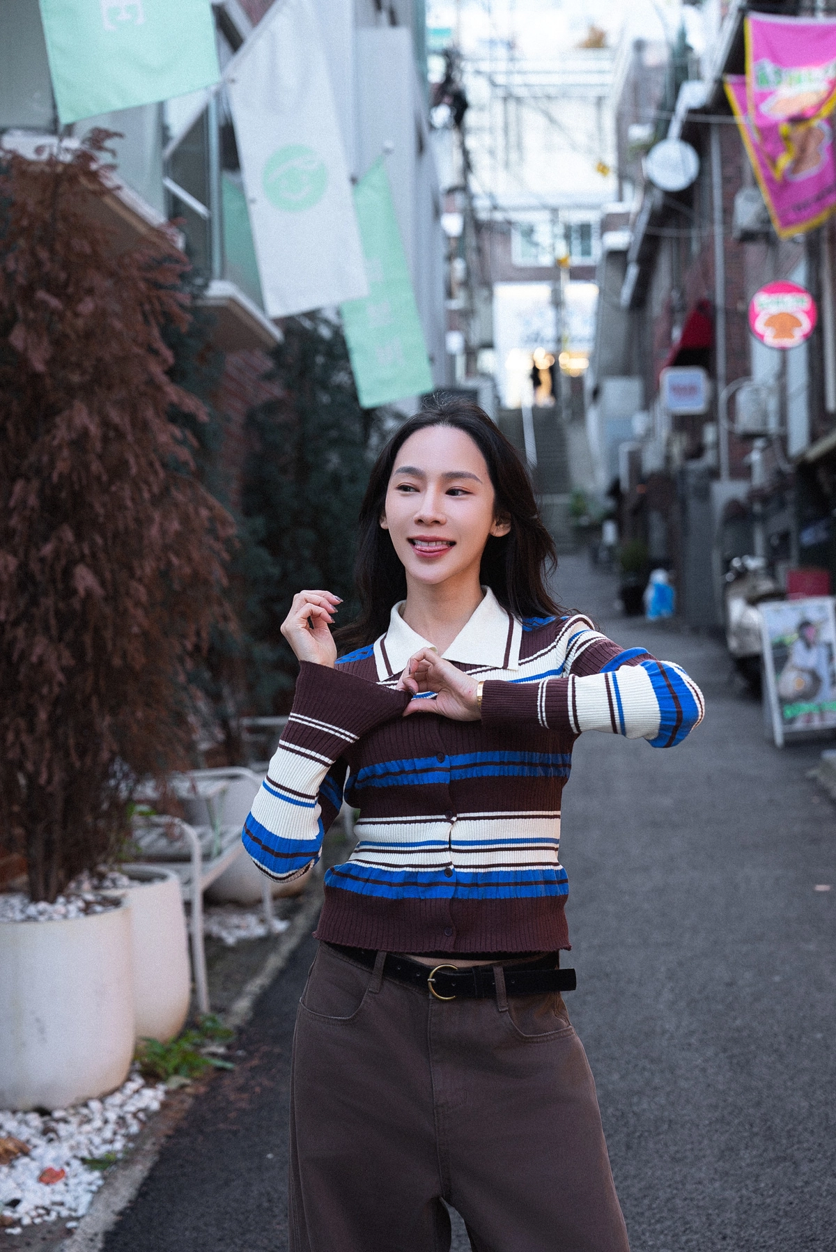 撞色條紋開襟上衣