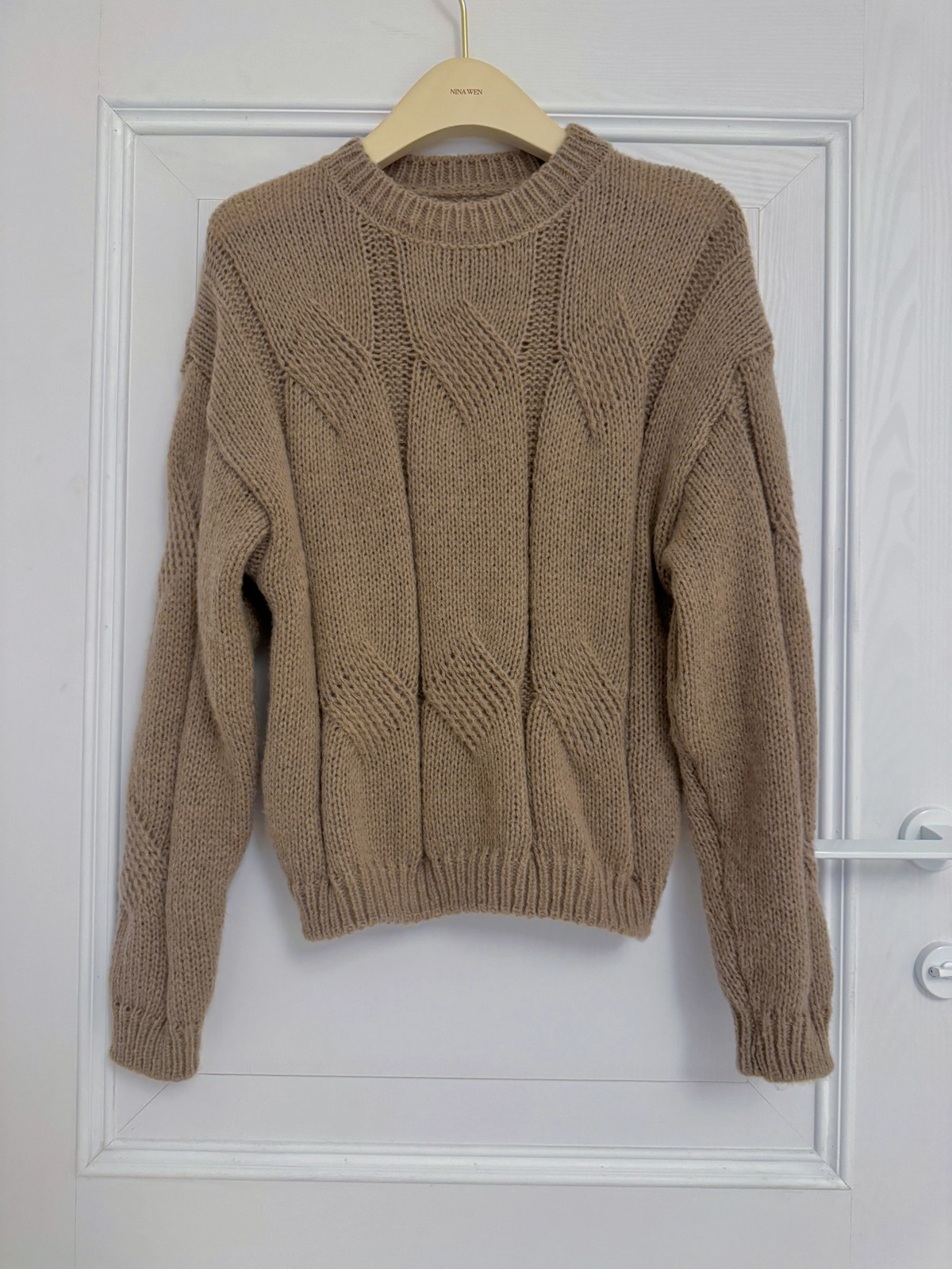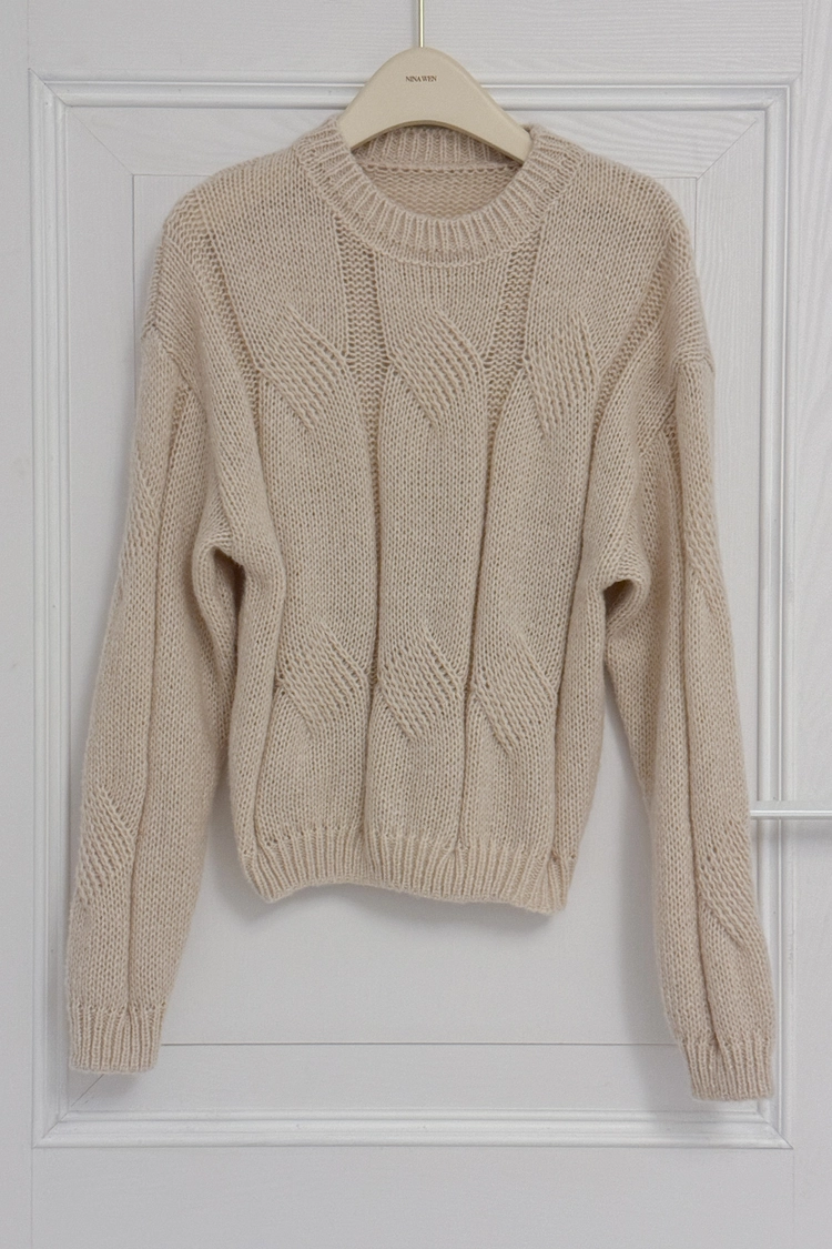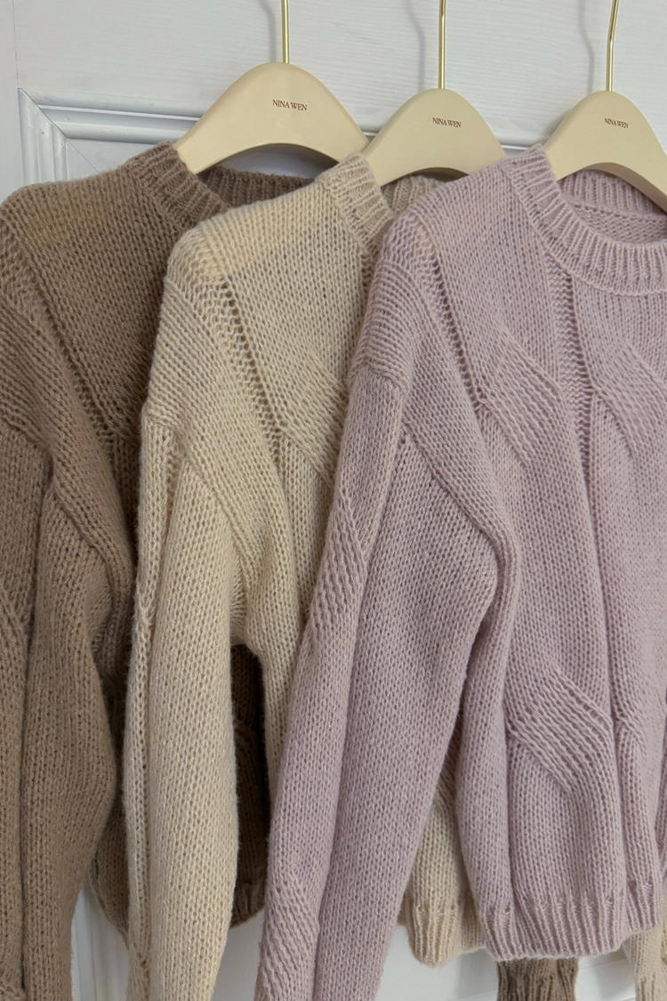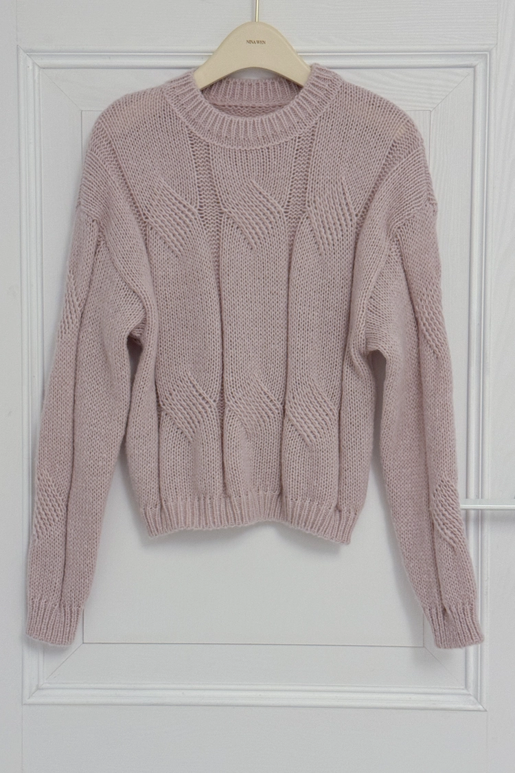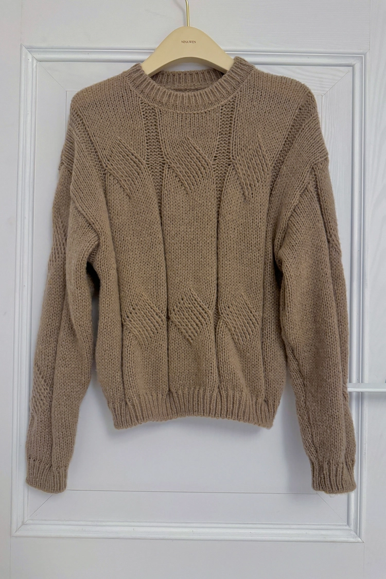 圓領粗麻花毛衣