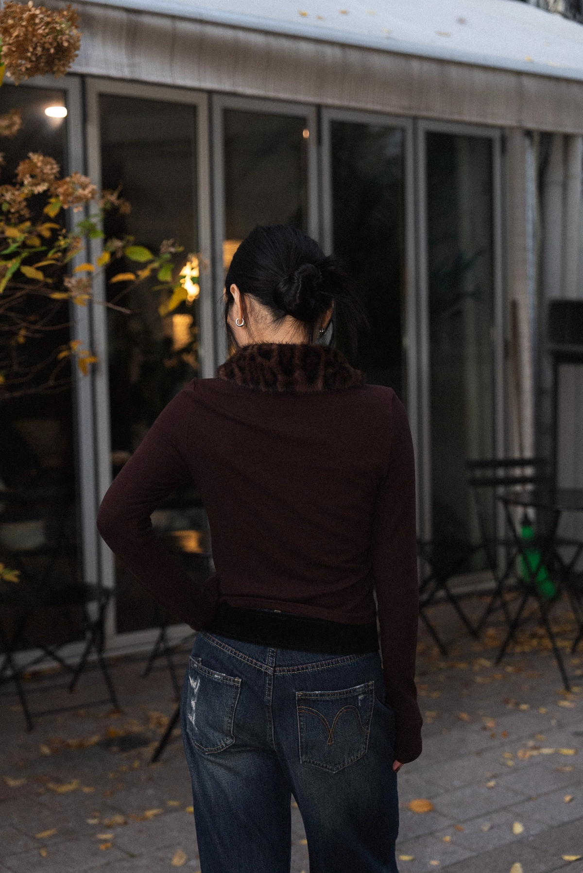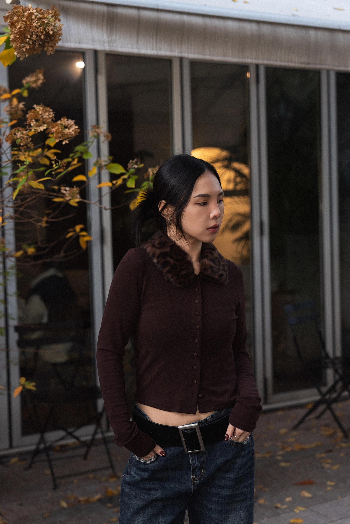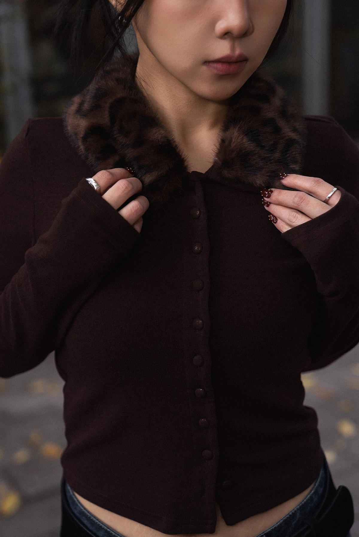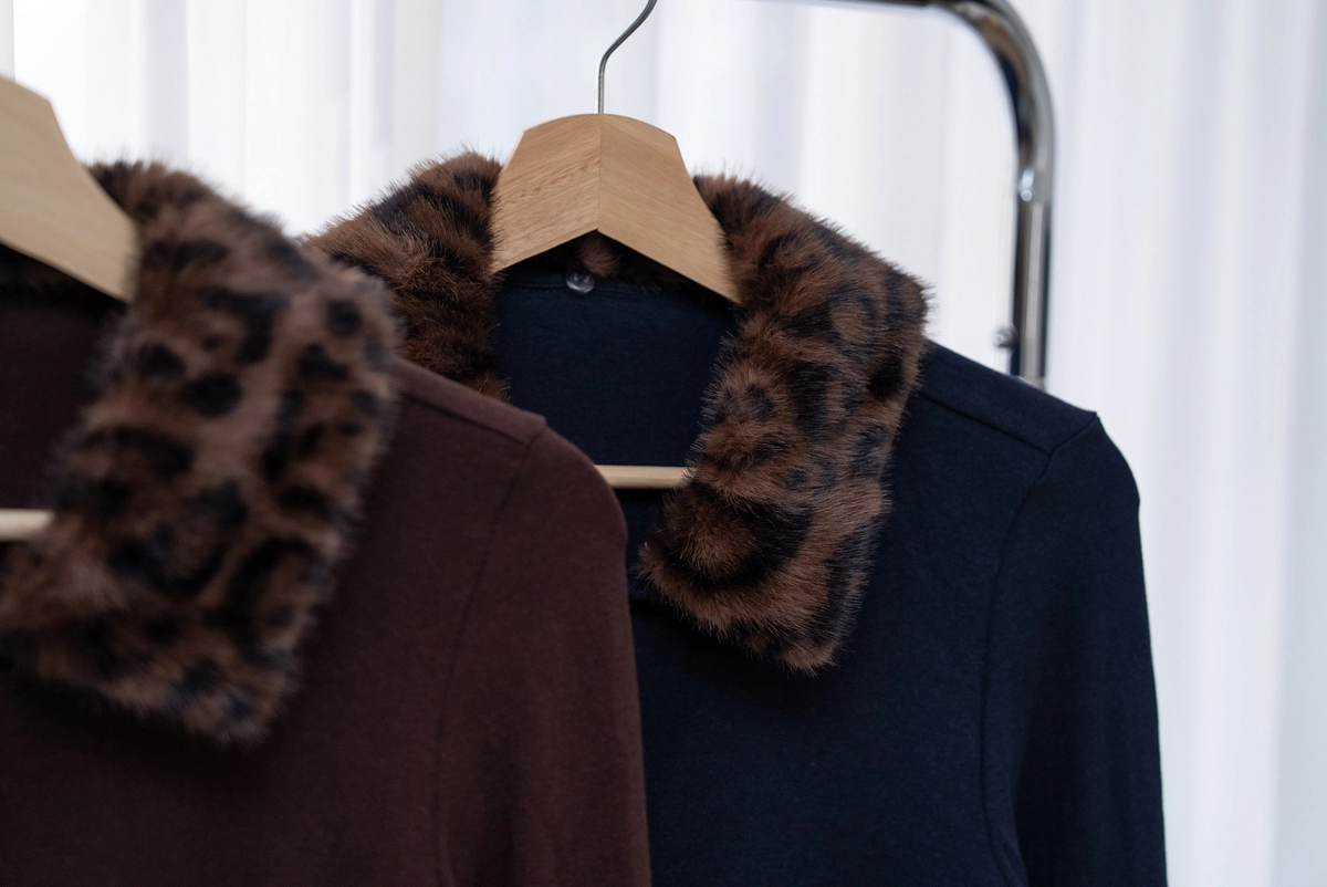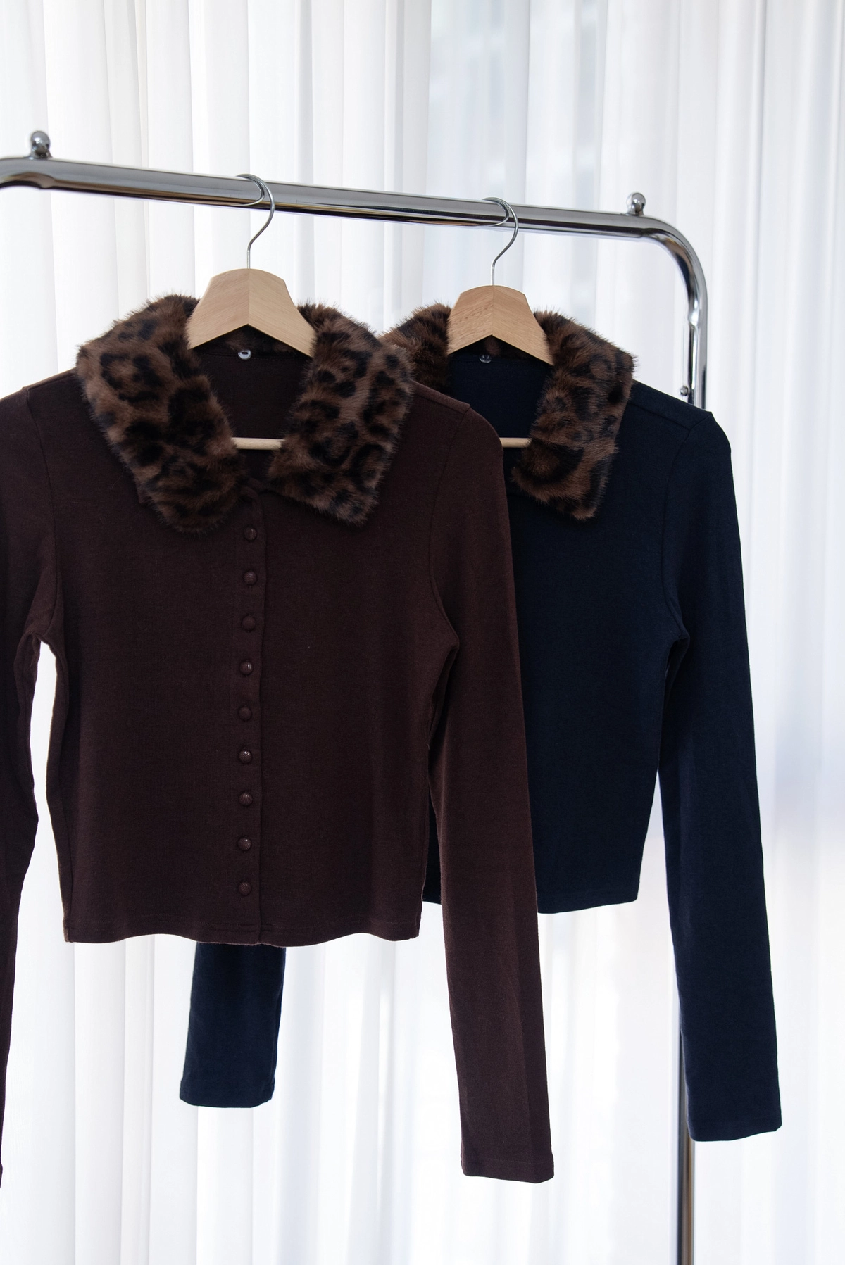 豹紋毛領開襟上衣