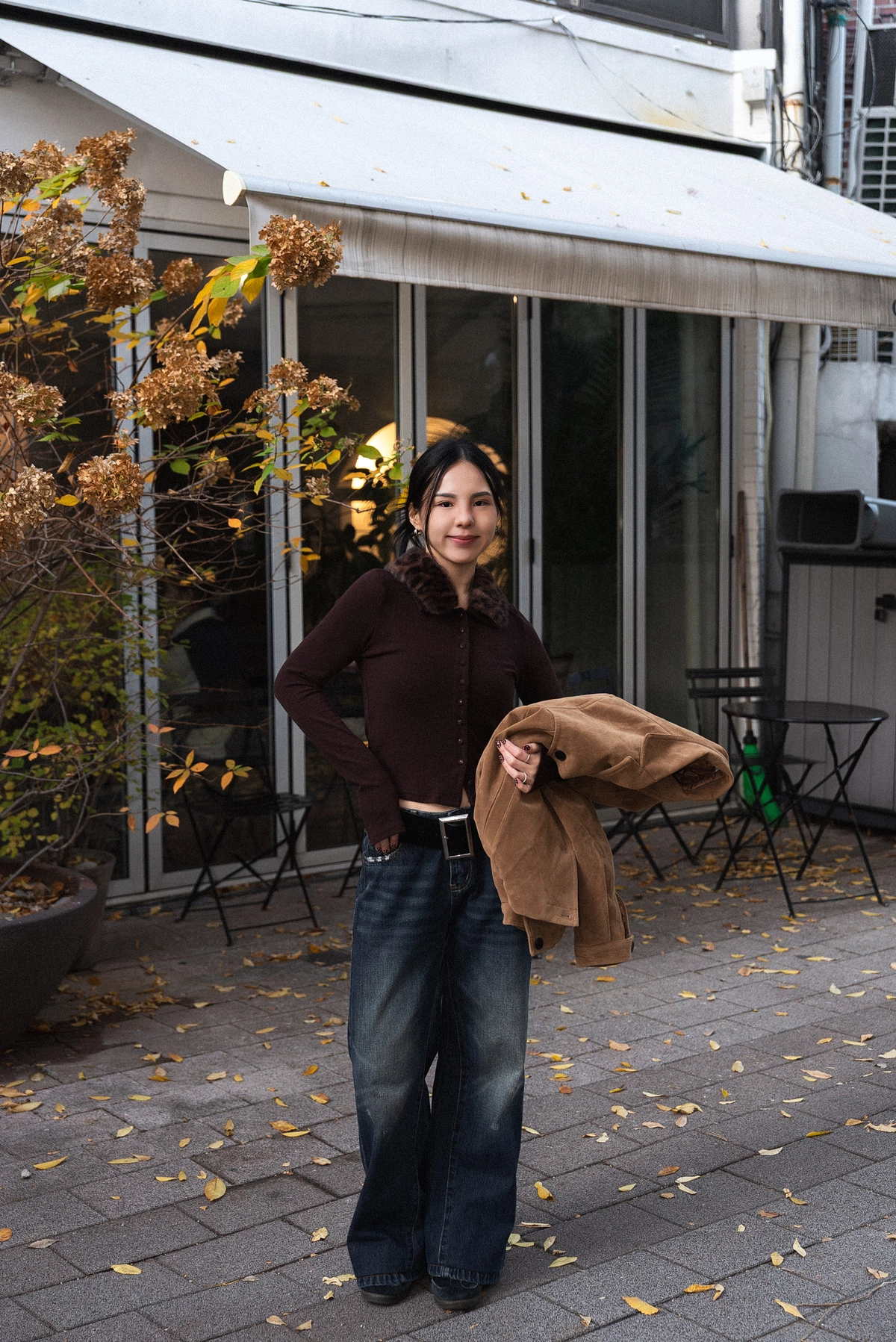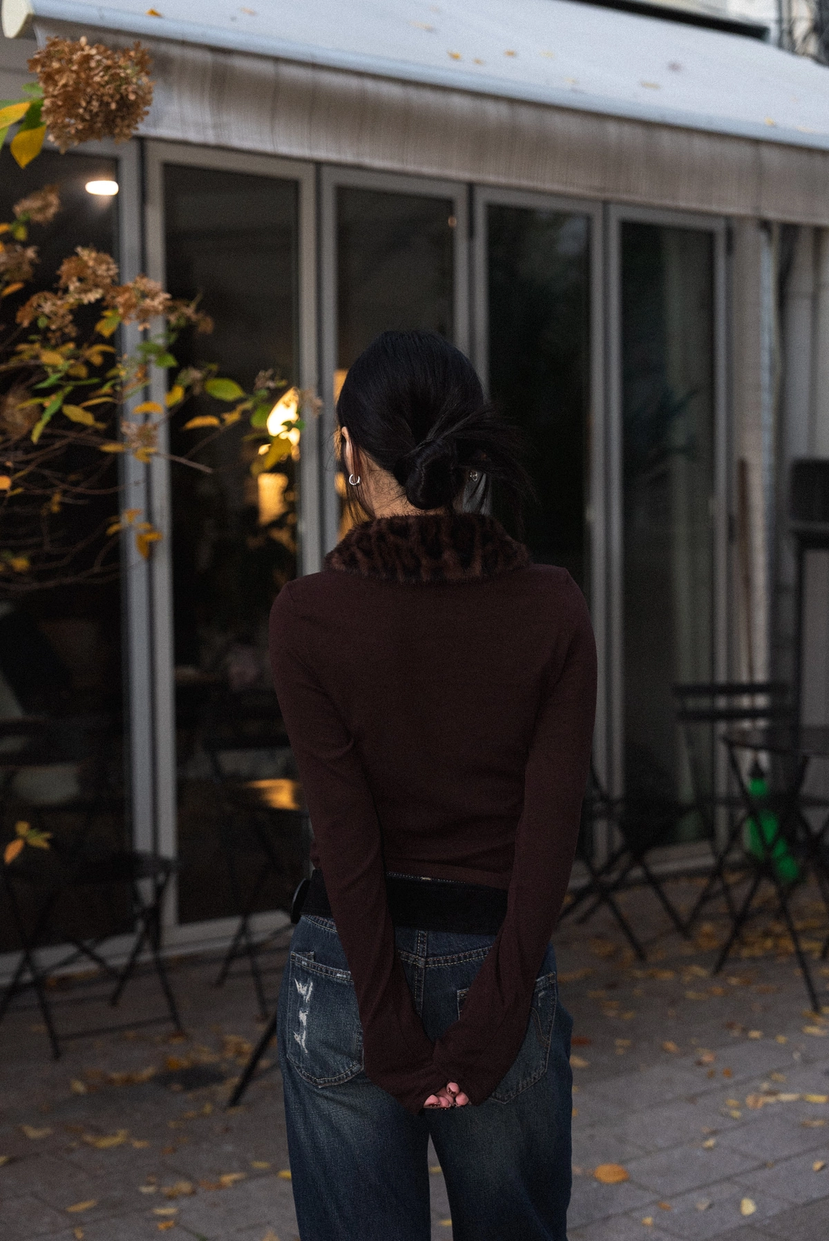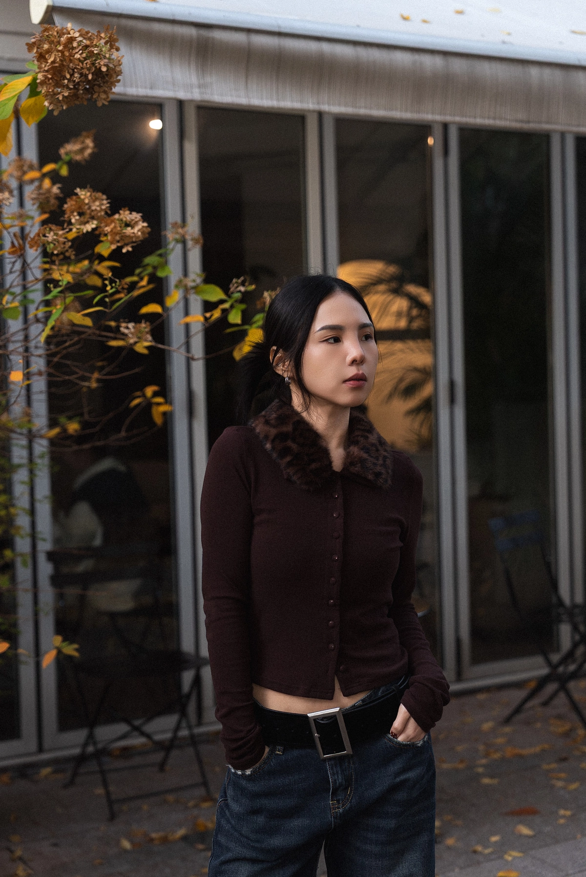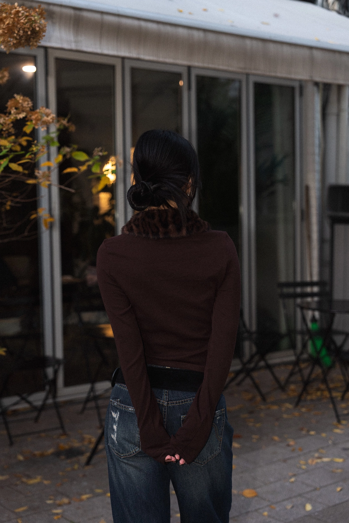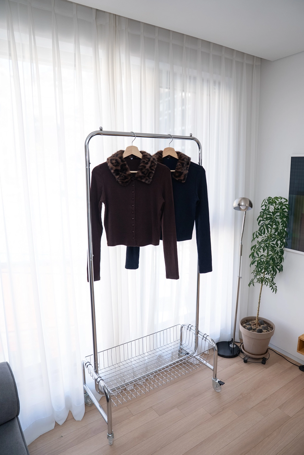 豹紋毛領開襟上衣