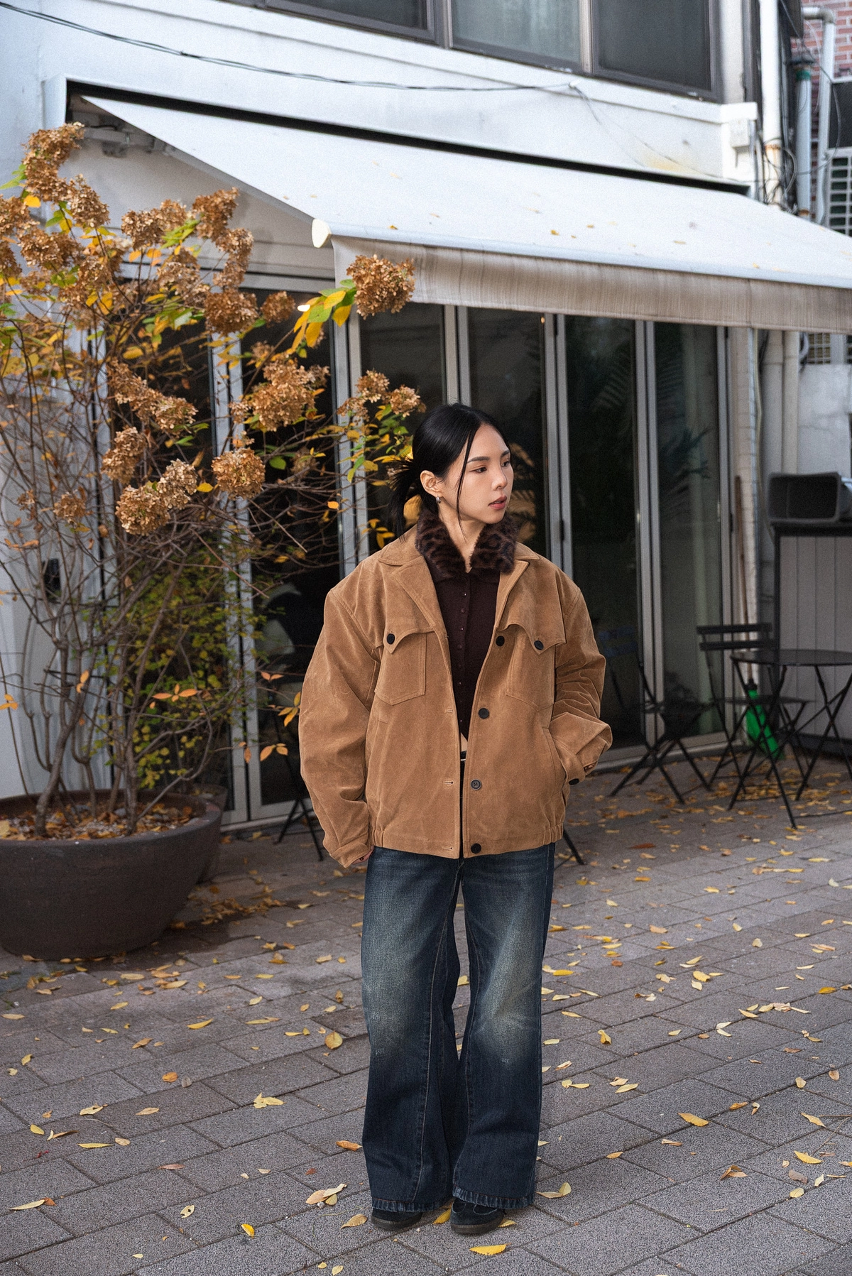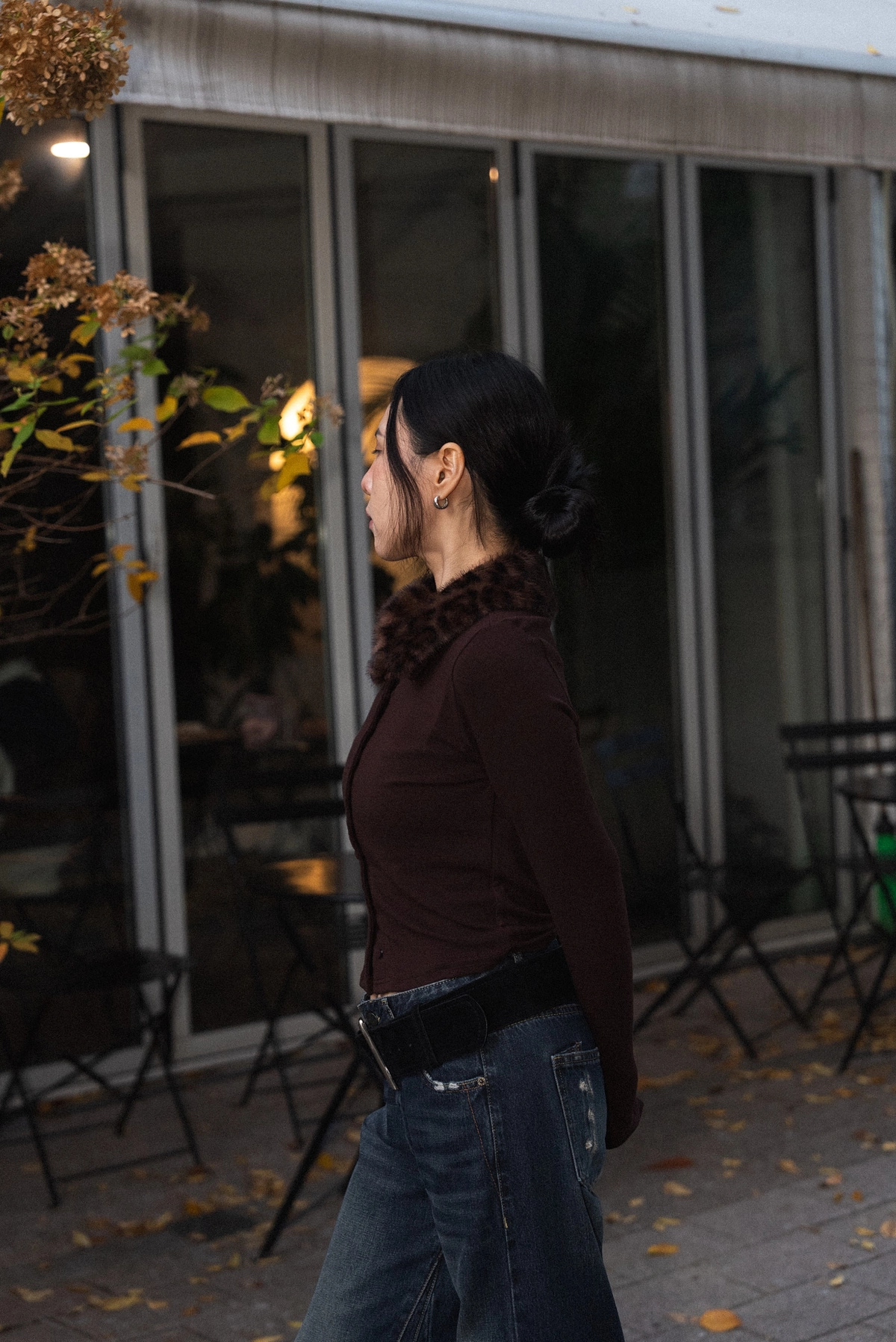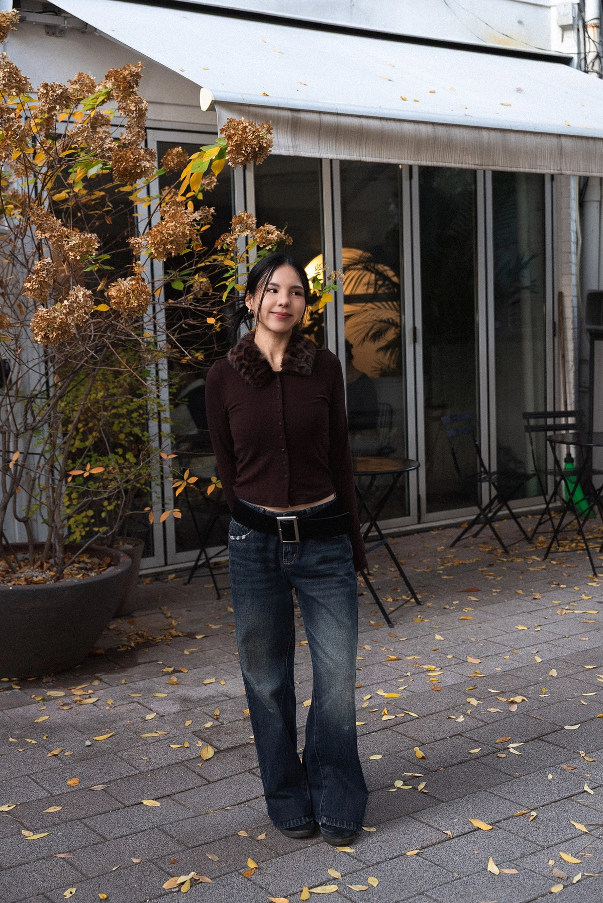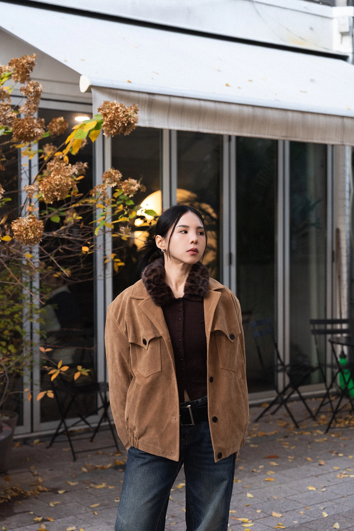 豹紋毛領開襟上衣
