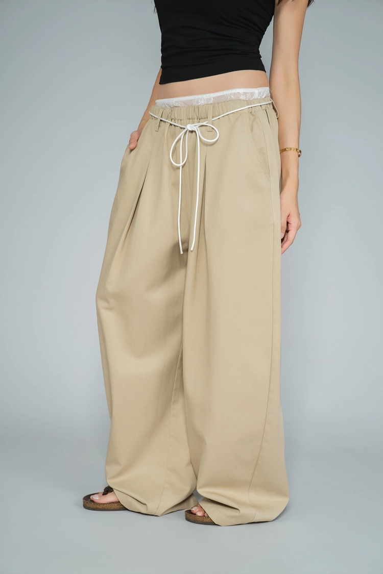 蕾絲腰頭休閒寬褲